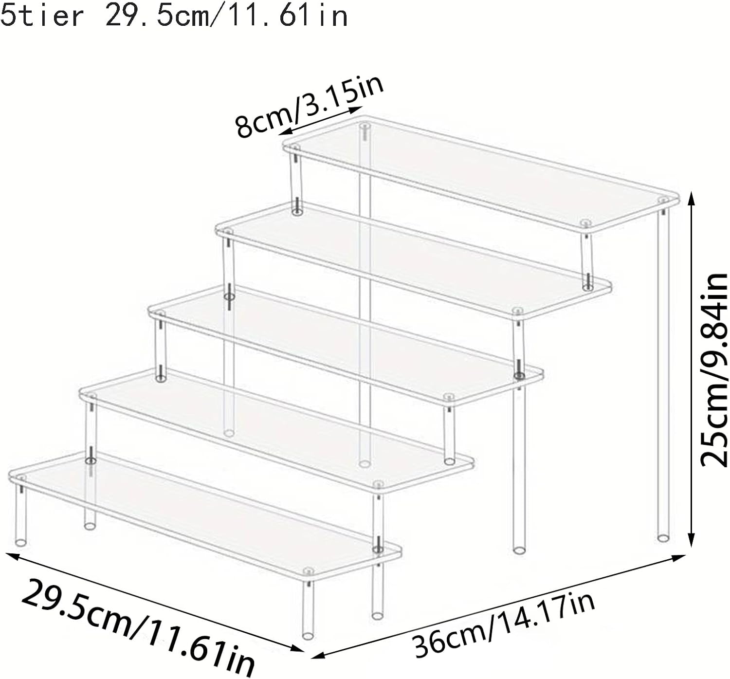 Acrylic 5-Tier Display Stand, Clear Perfume Organizer, Cupcake Stand Holder, Large Shelf Risers for Figures, Party Desserts, Home Decor