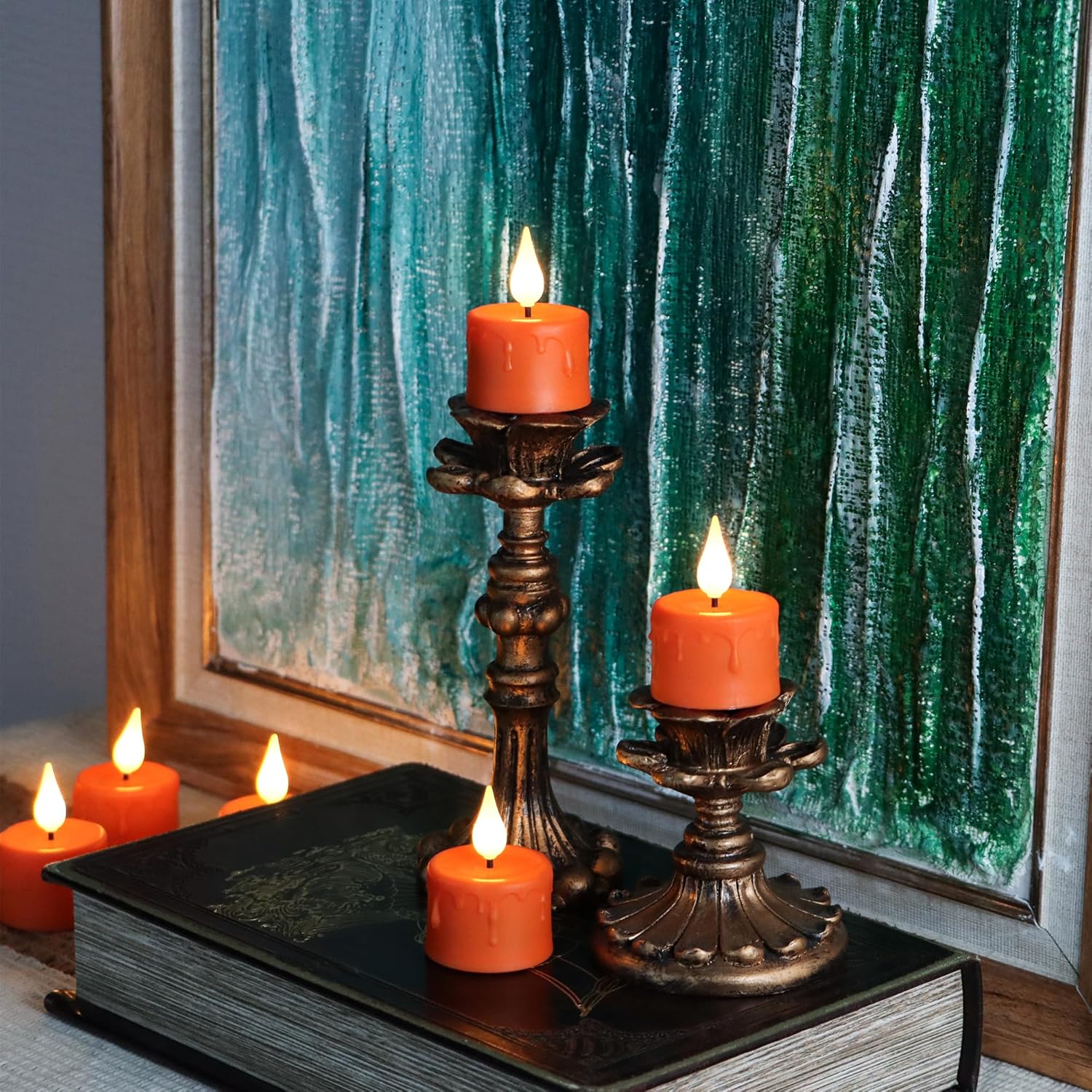 • [Widely Use]These led lights candles have an orange realistic little candle appearance, which fits the Halloween theme very well, adding a lovely touch to Halloween and autumn festivals. The orange tea candles can be used as decorations alone, whether placed on a table or lit at night, their flickering lights are perfect for creating an atmosphere; at the same time, they can also be used with other Halloween decorations.