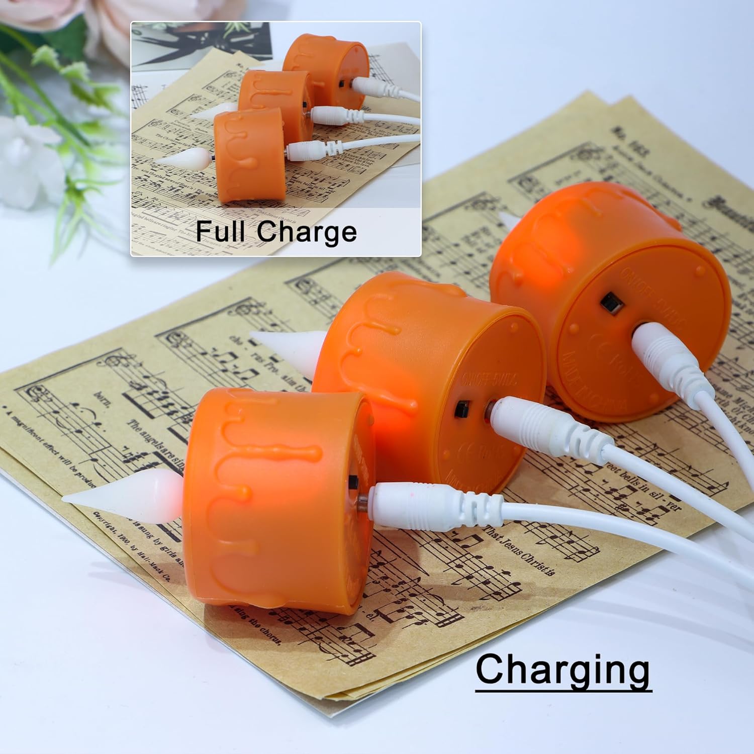 FREEPOWER Orange Halloween Candles,Rechargeable Flameless Candles with Remote Timer, Soft 3D Wick LED Tealights Candle, Rechargeable Candles Flickering Realistic for Halloween Decorations,Set of 6