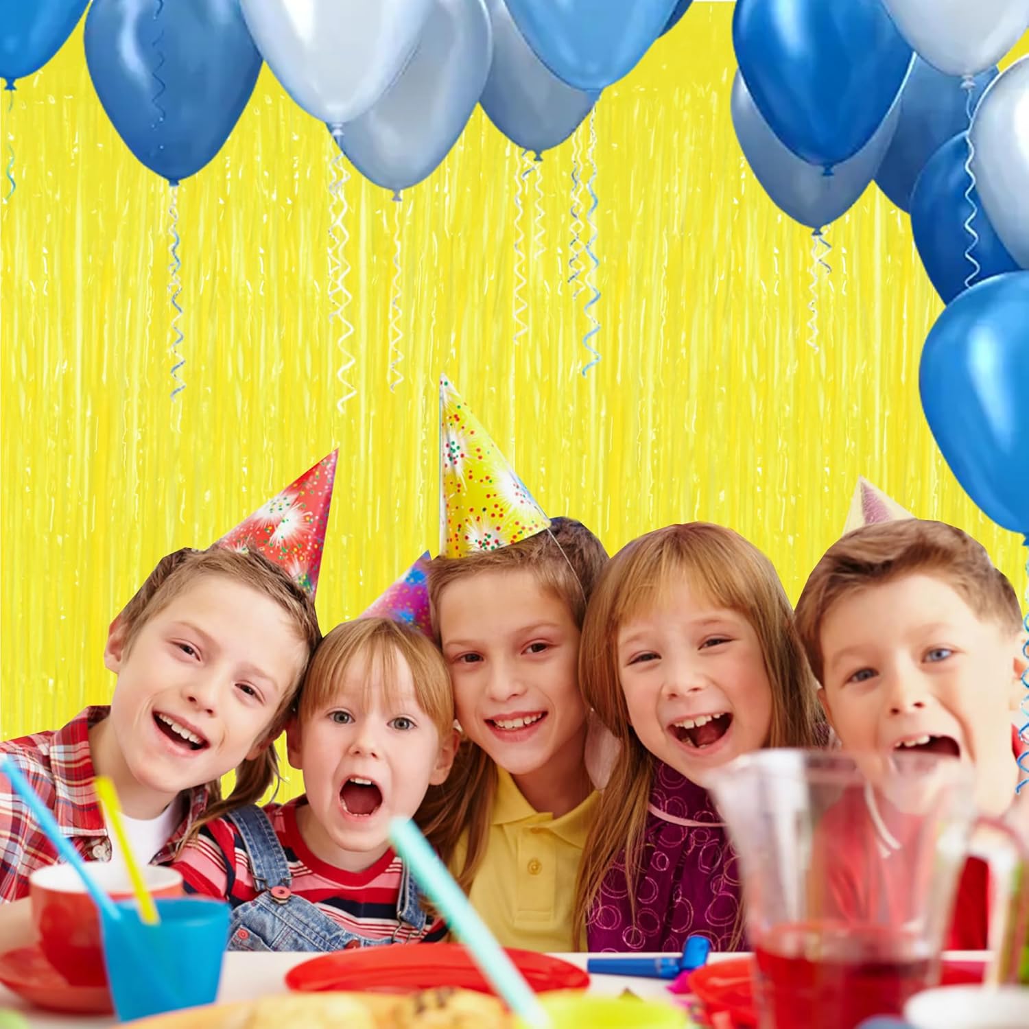 BEISHIDA 2Pcs Gold Door Streamer Fluorescent Gold Backdrop Blue Foil Fringe Curtains Tinsel for Birthday Baby Shower Halloween Backdrop Wedding Party Decoration (3.28 ft x 6.56 ft)