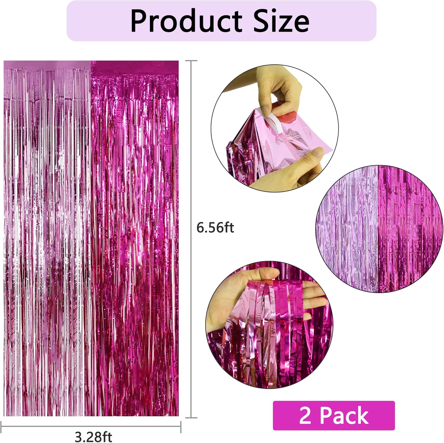 BEISHIDA 2Pcs Hot Pink Pink Door Streamer Hot Pink Backdrop Foil Fringe Tinsel Girls Hot Girls Curtains Backdrops for Birthday Baby Shower Gender Reveal Party Decoration (3.28 ft x 6.56 ft)