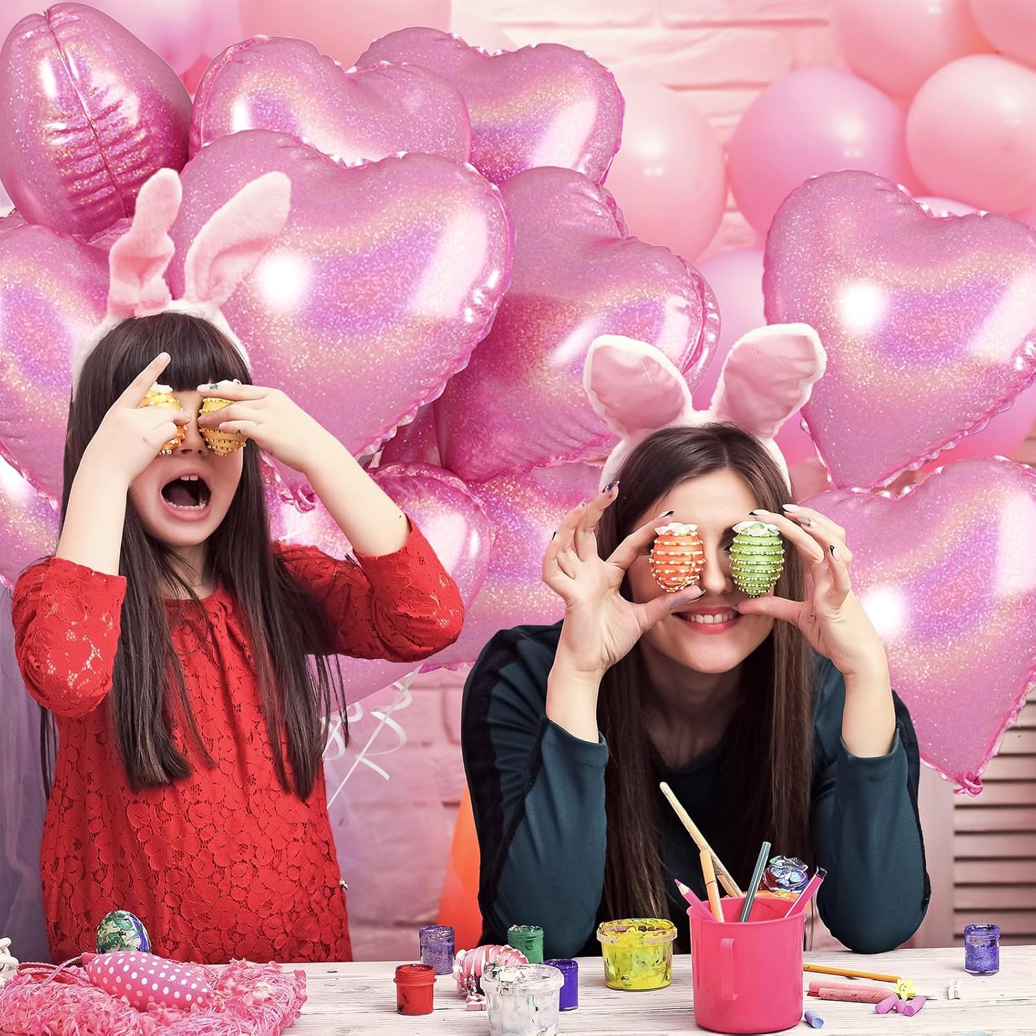 • Easy To Use: These glitter pink heart shaped birthday balloons can be filled with air or helium (inflate to 85%-90%, to prevent it from becoming too large and exploding). The valve seals automatically when inflated, and the gas inside can be emptied with a plastic straw, making them reusable. The set also comes with 10 meters of ribbon, making it easy to decorate your room for your children and spouse.