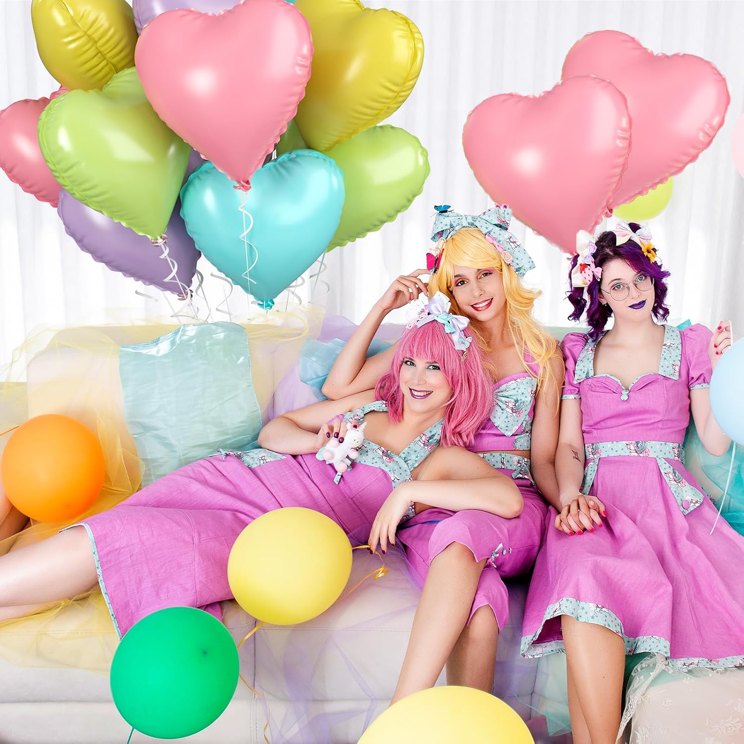 • 10 PCS Macaron Heart Balloons: Contains 2 x 18 inches pastel pink heart shaped balloons, 2 x 18 inches purple heart shaped balloons, 2 x 18 inches green balloons, 2 x 18 inches teal balloons, 2 x 18 inches yellow balloons, 1 x 10m ribbon. The pastel foil heart balloons are specially designed to add a touch of fun and surprise to any party or holiday celebration. With a size of 18 inches, they are the perfect addition to your decorating needs, leaving your guests with an unforgettable smile!