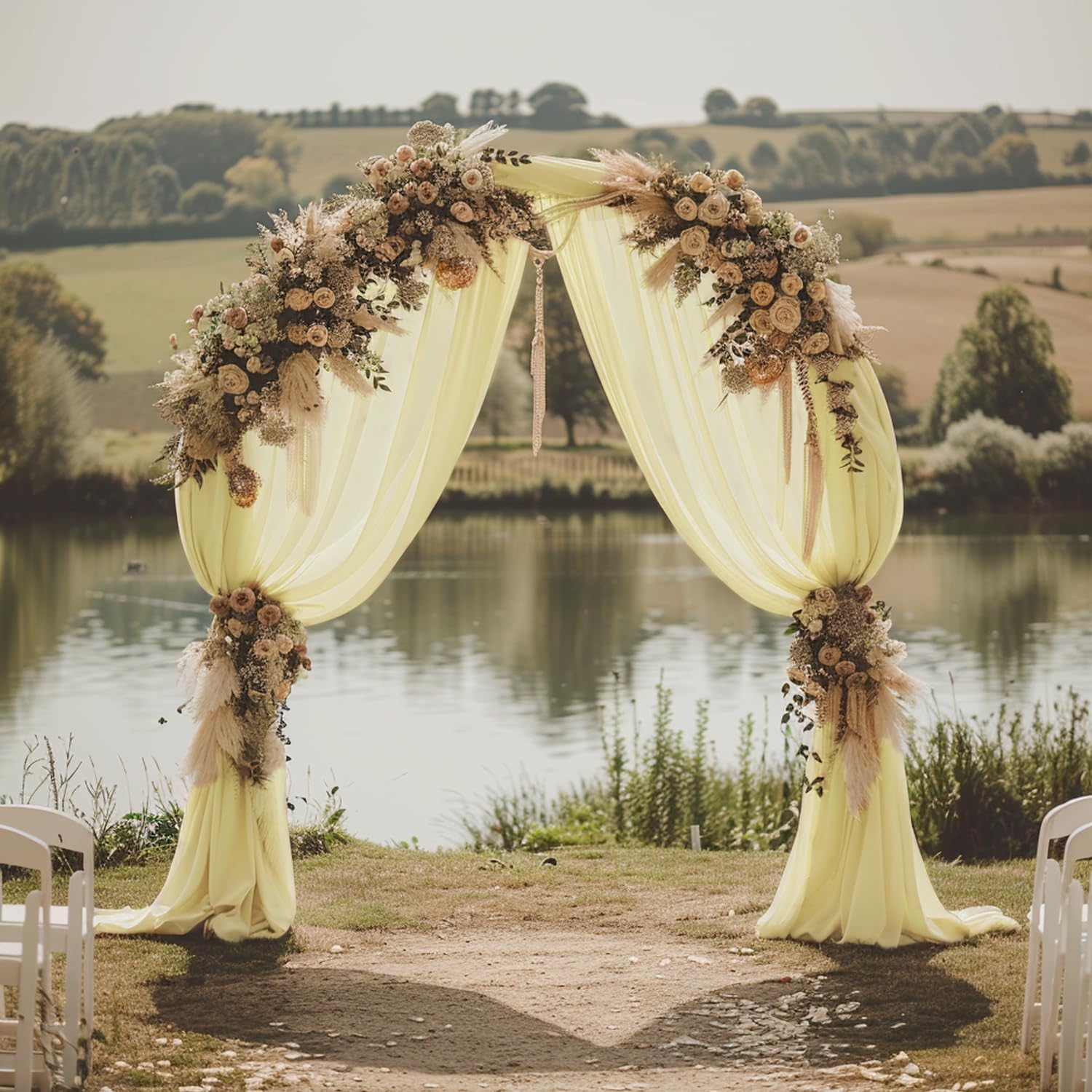 • 【Sheer Arch Drapes Fabric】This polyester fabric drapes beautifully to transform any arch into a romantic backdrop for wedding photos and ceremonies