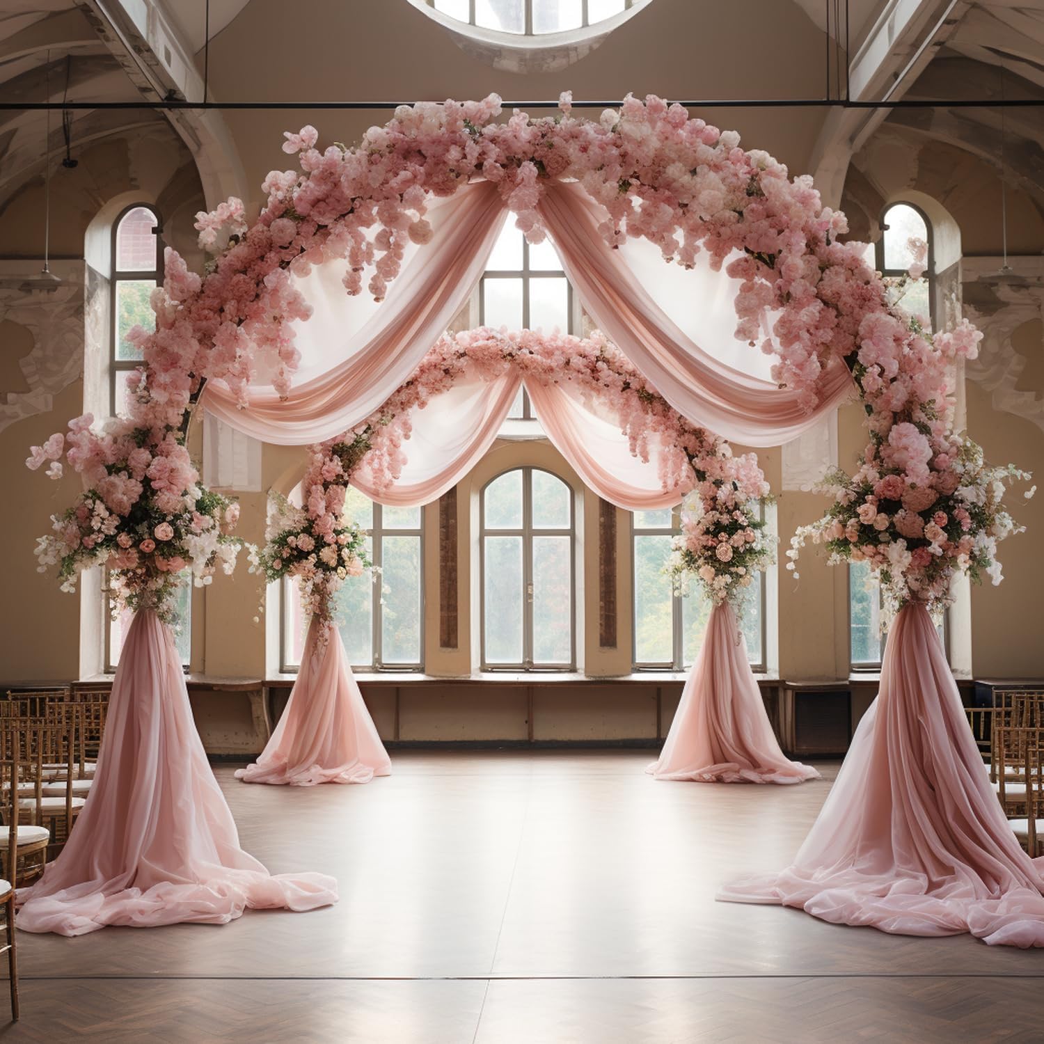 • 【Sheer Arch Drapes Fabric】This polyester fabric drapes beautifully to transform any arch into a romantic backdrop for wedding photos and ceremonies