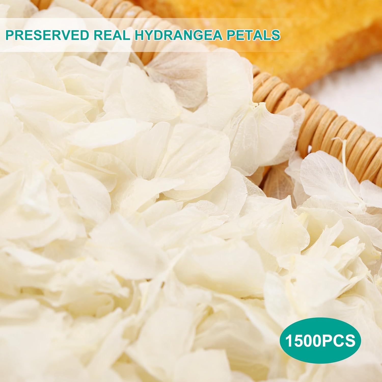 • NATURAL REAL FLOWER PETALS: Each package contains about 1500 well-preserved white petals. Your petals are made from high-quality fresh hydrangea flowers and special preservation techniques. Unlike artificial petals, they are real flowers that can be last 1 to 3 years