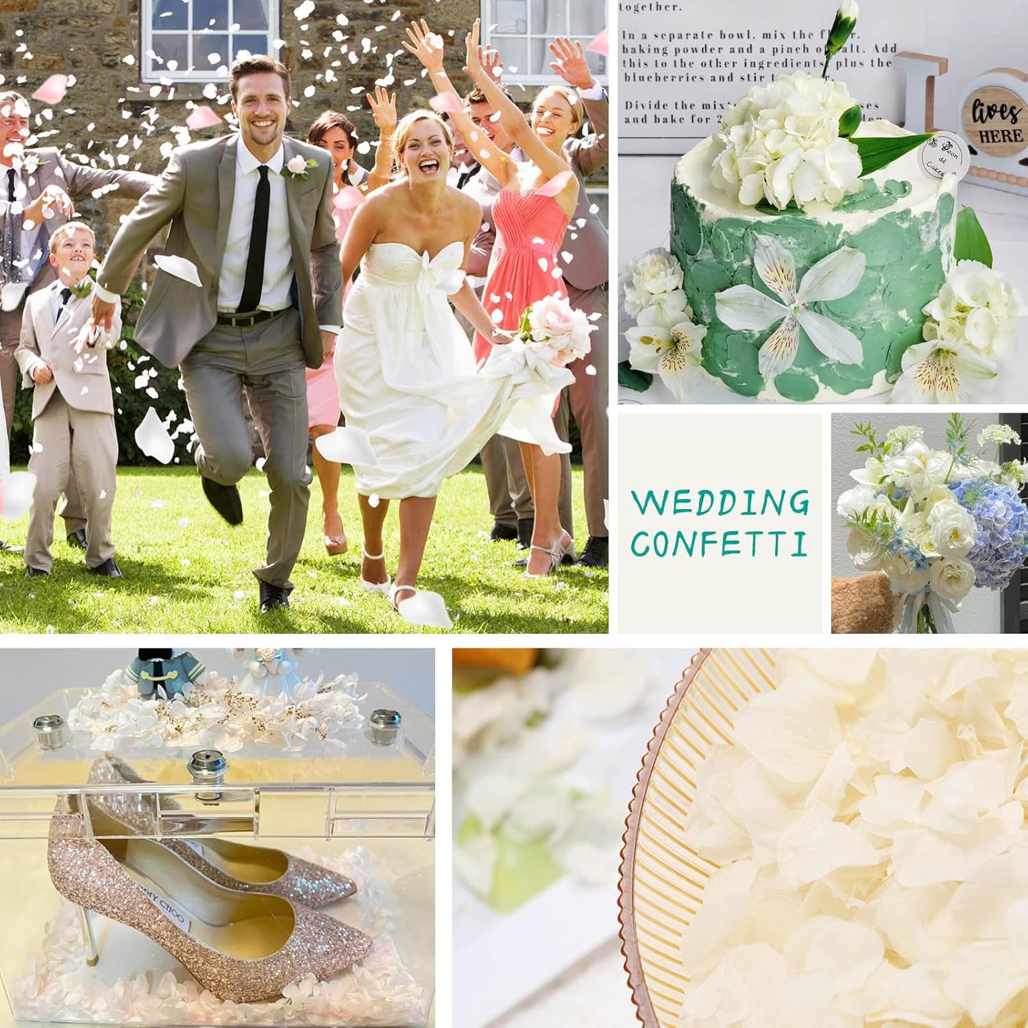Dried Real Hydrangea Petals, Natural Preserved Dry Flower Petal for Wedding Party Dinner Table Decor, Romantic Night for Her, Engagement, Bridal Shower, Valentines Day, Confetti (1.1oz, Ivory White)