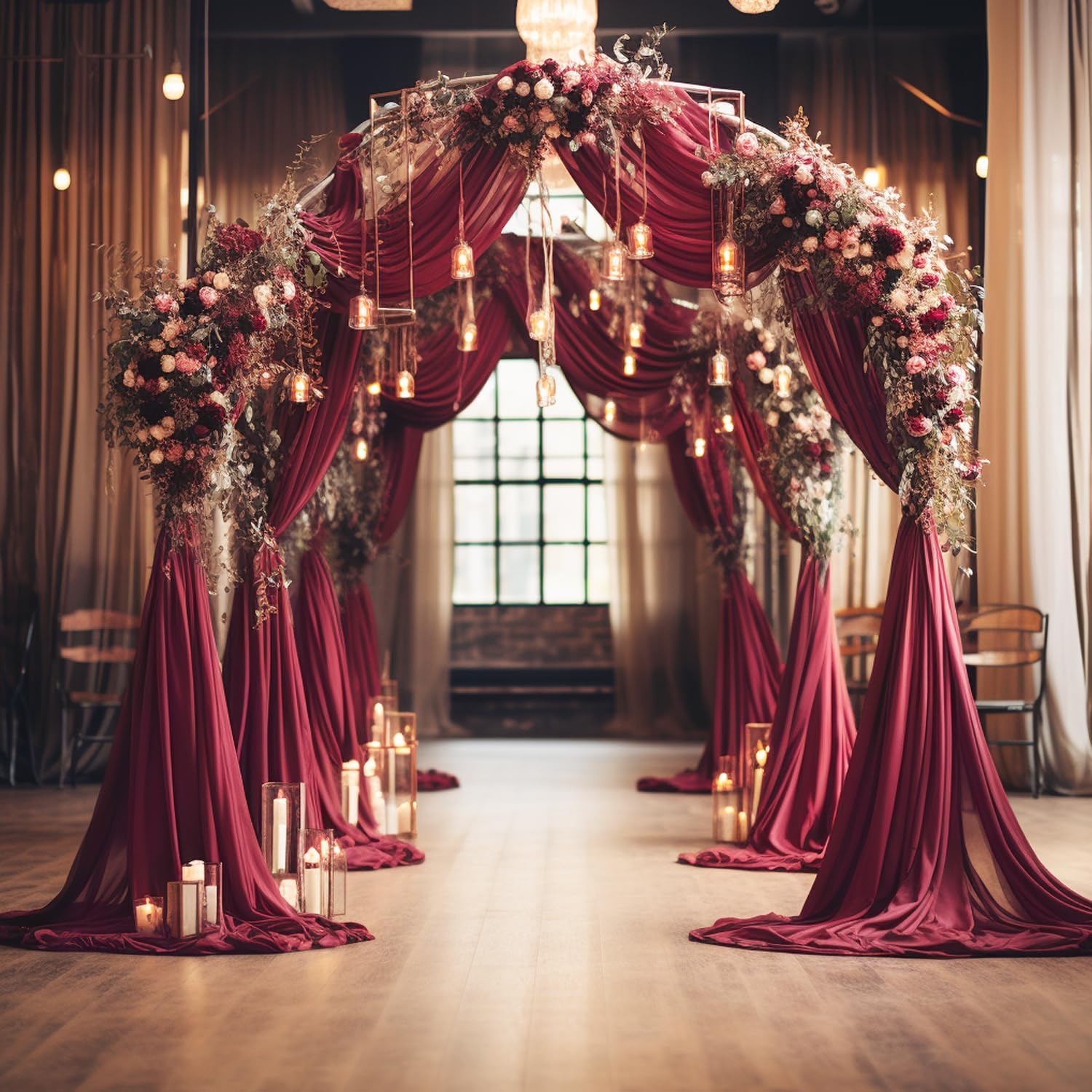 Wokceer Wedding Arch Draping Fabric - 28.7" x 20FT Burgundy Sheer Drapes Backdrop for Wedding Ceremony, Birthday Party, Bridal Shower Decoration