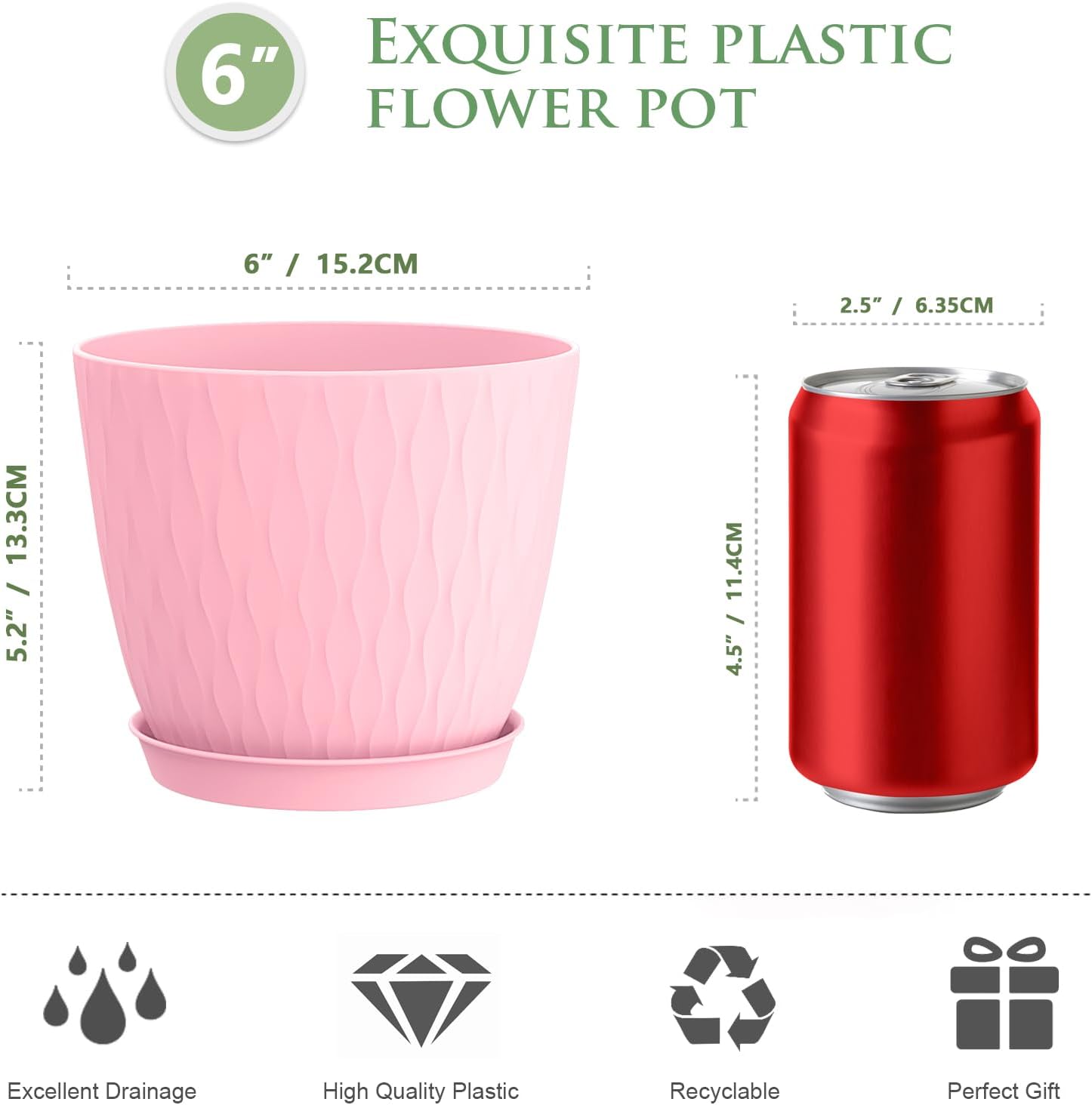 • 【Plant Pots with Drainage Holes and Saucers】Each plant pot features well-designed cyclone drainage holes at the bottom to ensure proper water flow. The flower pots don't clip into the saucers, just set in but we have a slightly raised design to allow water to drain.