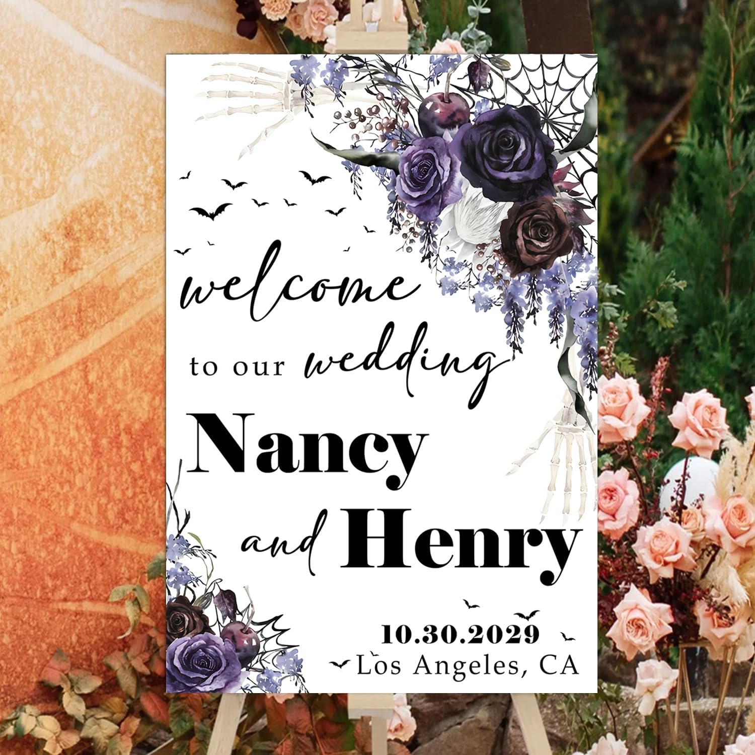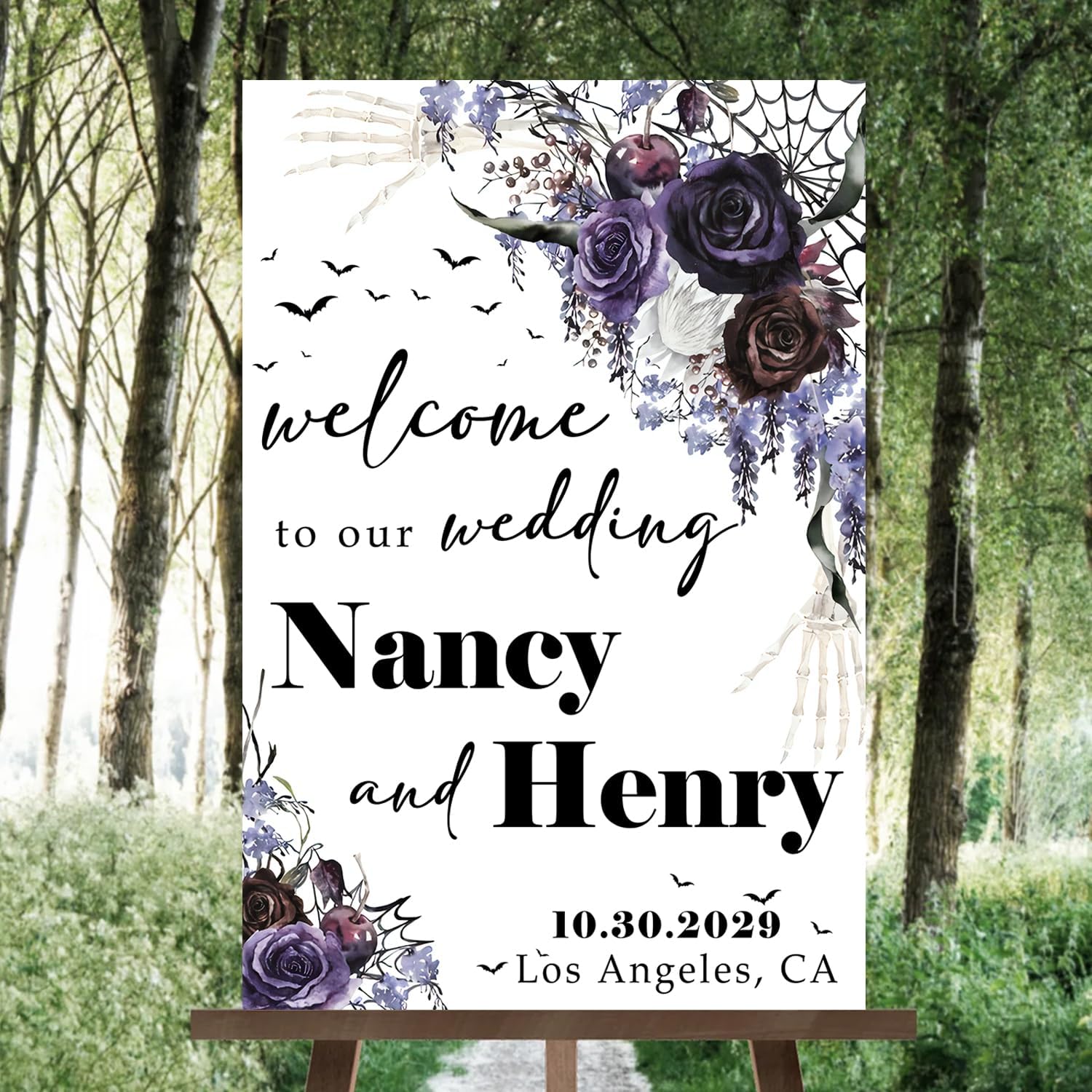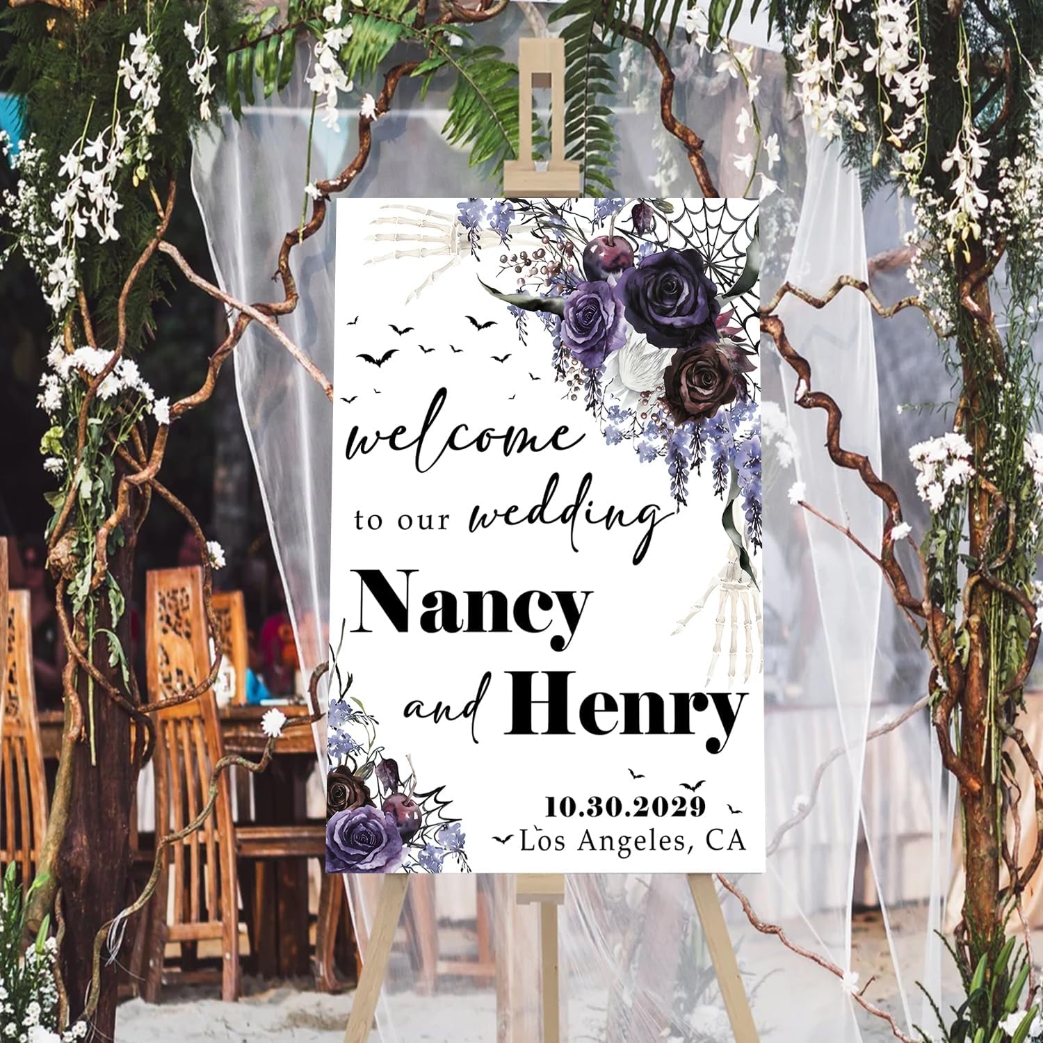 • A stunning choice for those planning a Gothic-inspired wedding or a Halloween-themed celebration. Whether you're exchanging vows on All Hallows' Eve or simply love the allure of Gothic aesthetics, this welcome sign will captivate your guests and make a bold statement.
