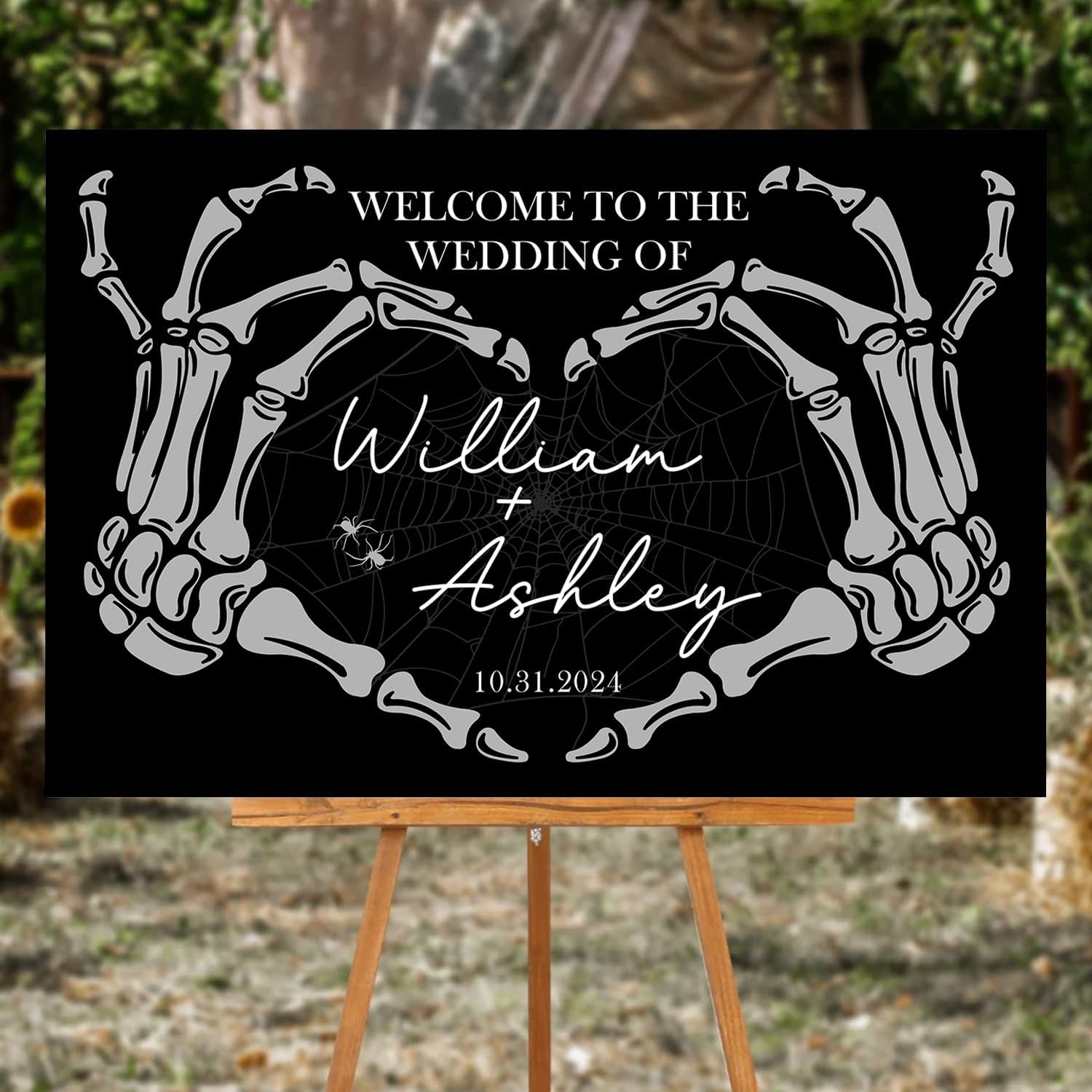 • A stunning choice for those planning a Gothic-inspired wedding or a Halloween-themed celebration. Whether you're exchanging vows on All Hallows' Eve or simply love the allure of Gothic aesthetics, this welcome sign will captivate your guests and make a bold statement.