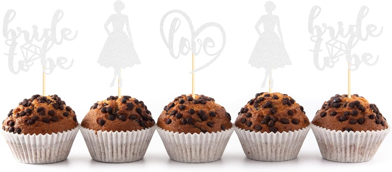 • Unique Design: This 24PCS Bride to Be Cupcake Toppers with Heart Dress to make your Wedding Engagement party stand out! The delicate design like your a match made in heaven makes your dessert look more romantic. Shimmering glitterscreate a lovely and sweet feel for your wedding party
