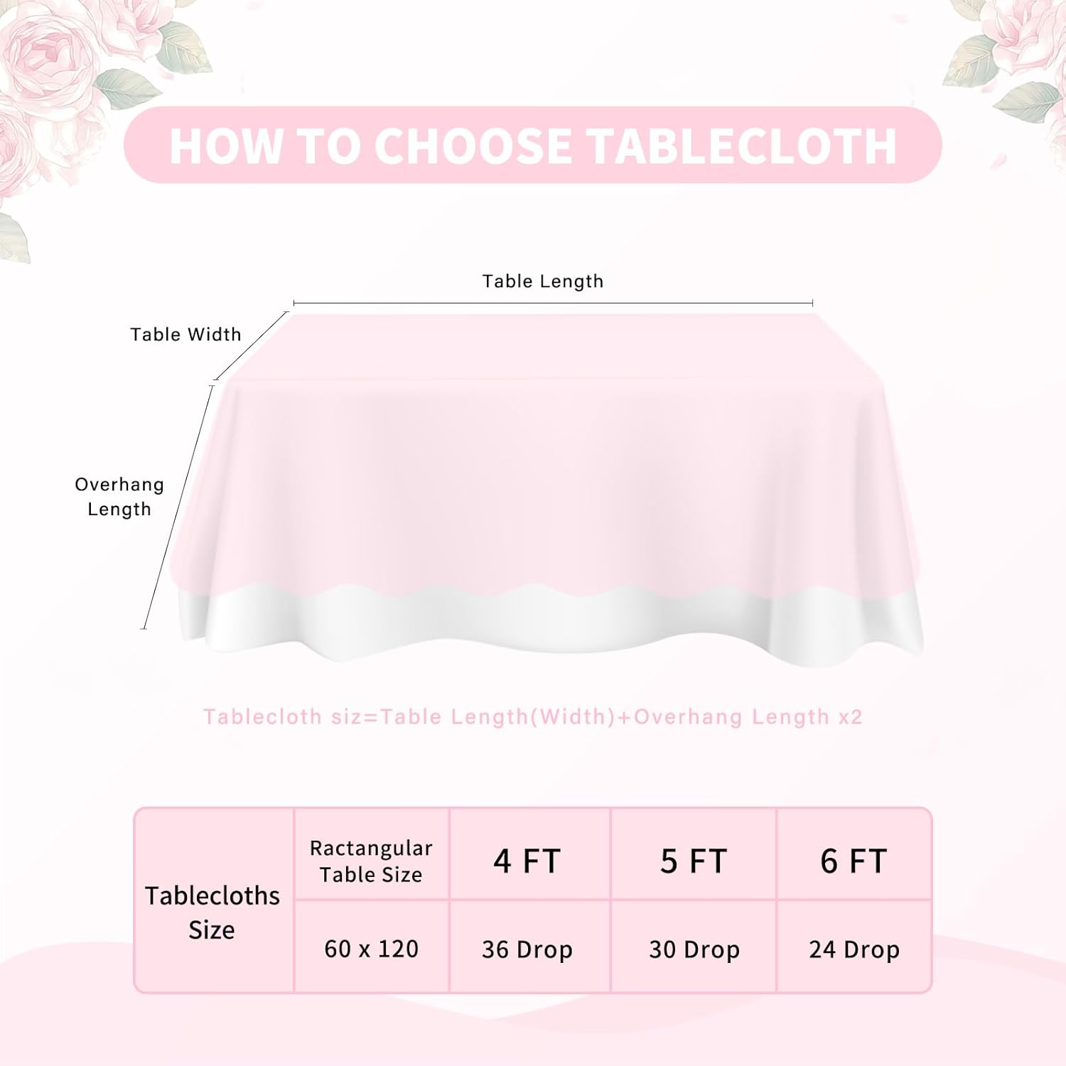 • Pink Lace Tablecloth: Piece of 2 pink lace tablecloth measuring 60 by 120 inches (10 ft) and including 4 white ribbons. Suitable for use on rectangular or round tables.