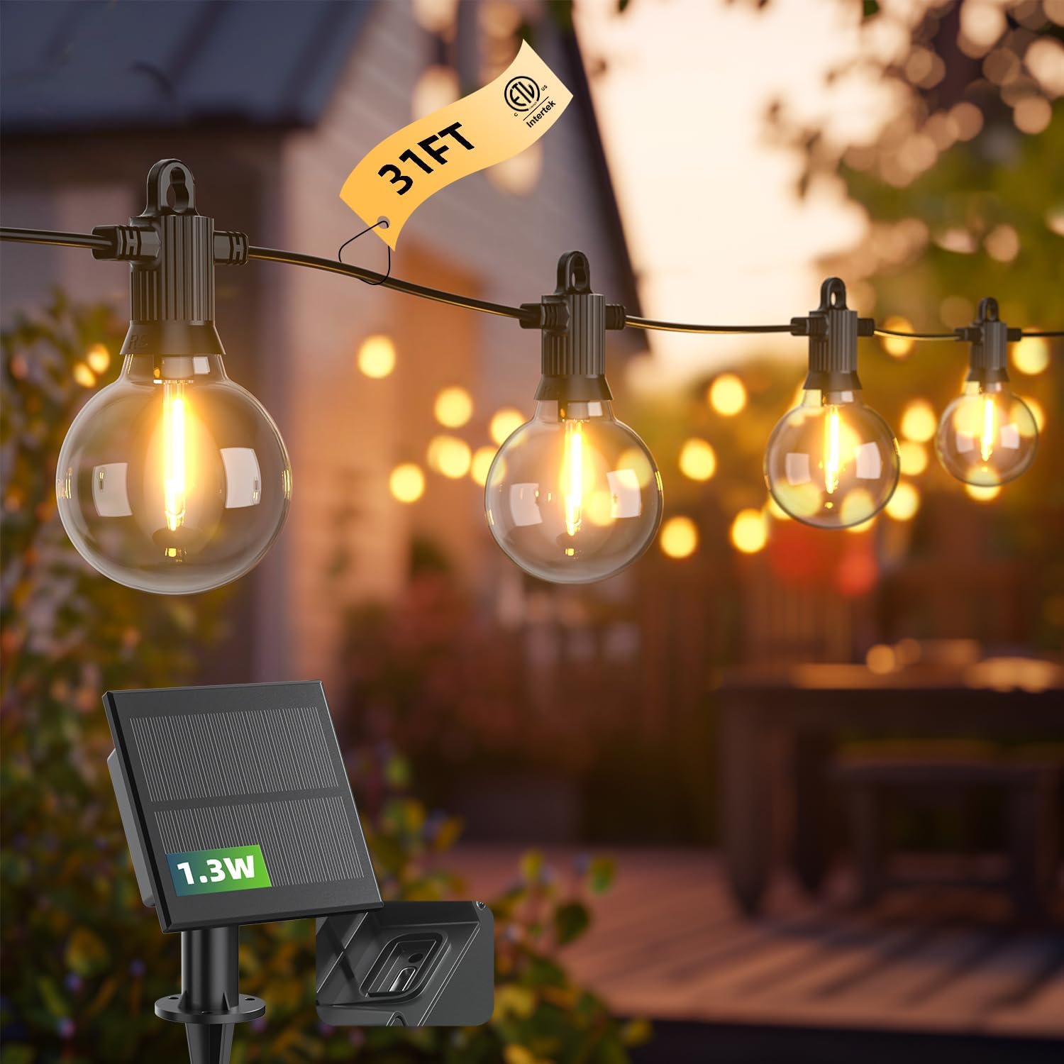 • Superior LED Technology Over Incandescent Bulbs: Experience the excellence of Kawaya's 31FT solar G40 LED outdoor string lights, which offer a longer lifespan and significant energy savings compared to traditional incandescent bulbs. With each LED bulb lasting up to 30,000 hours, these outdoor patio lights reduce electricity costs and minimize maintenance, making them a smart choice for both residential and commercial outdoor string lighting needs.