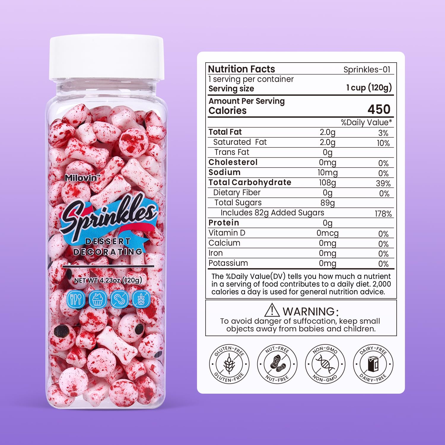 Bloody Eyeballs Bones, Edible Candy Sprinkles for Halloween, Candy Eyes, Bloody Bone Candy for Cookies, Cupcakes, Cake, Ice Cream, Cake Top(4.23oz/120g)