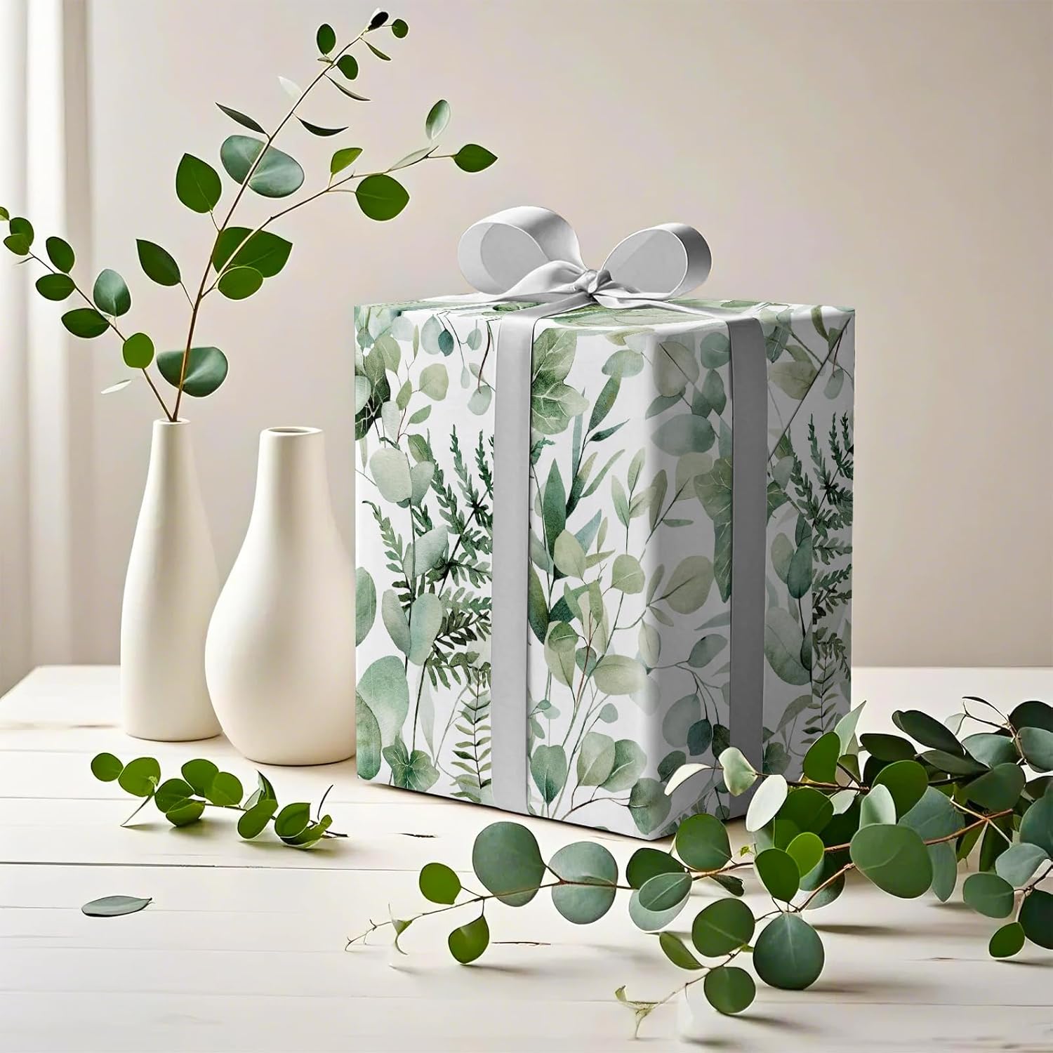 WRAPAHOLIC Eucalyptus Leaves Wrapping Paper Roll - Mini Roll - 17 Inch x 33 Feet - Greenery Wrapping Paper Perfect for Birthday, Wedding, Bridal Shower