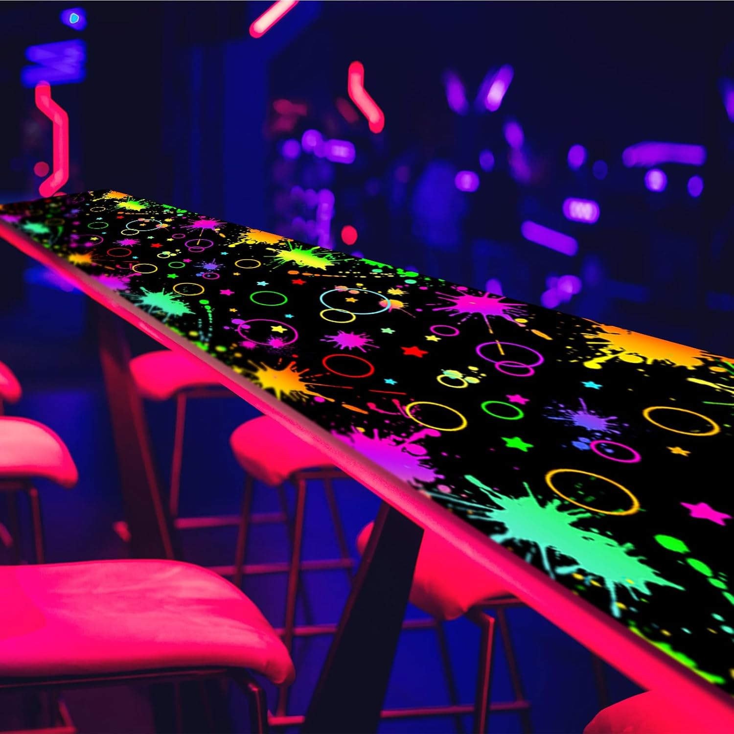 Haull 118 x 39 Inch Neon Light up Dance Floor Glow in The Dark Runner UV Reactive Blacklight Floor Aisle Runner Decor Wall Props for 80s 90s Neon Birthday Party Decorations(Gradient Ink)