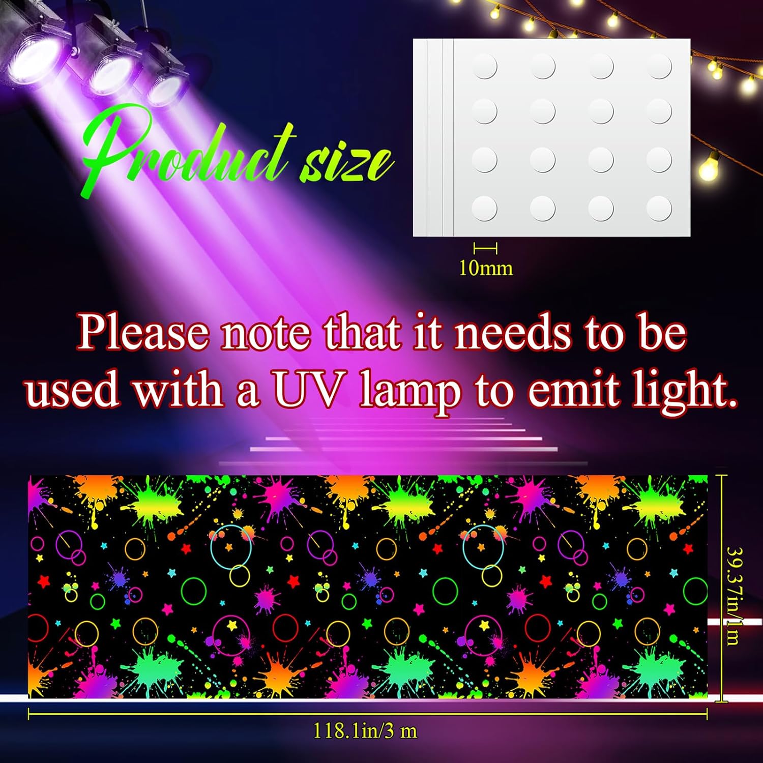 • Wide Application: the colorful carpet runner may be utilized in a variety of situations, including the neon theme party, vintage 80s 90s themed party, birthday party, glow in the dark themed party, carnivals, and stage performances, illuminating the night and dancing