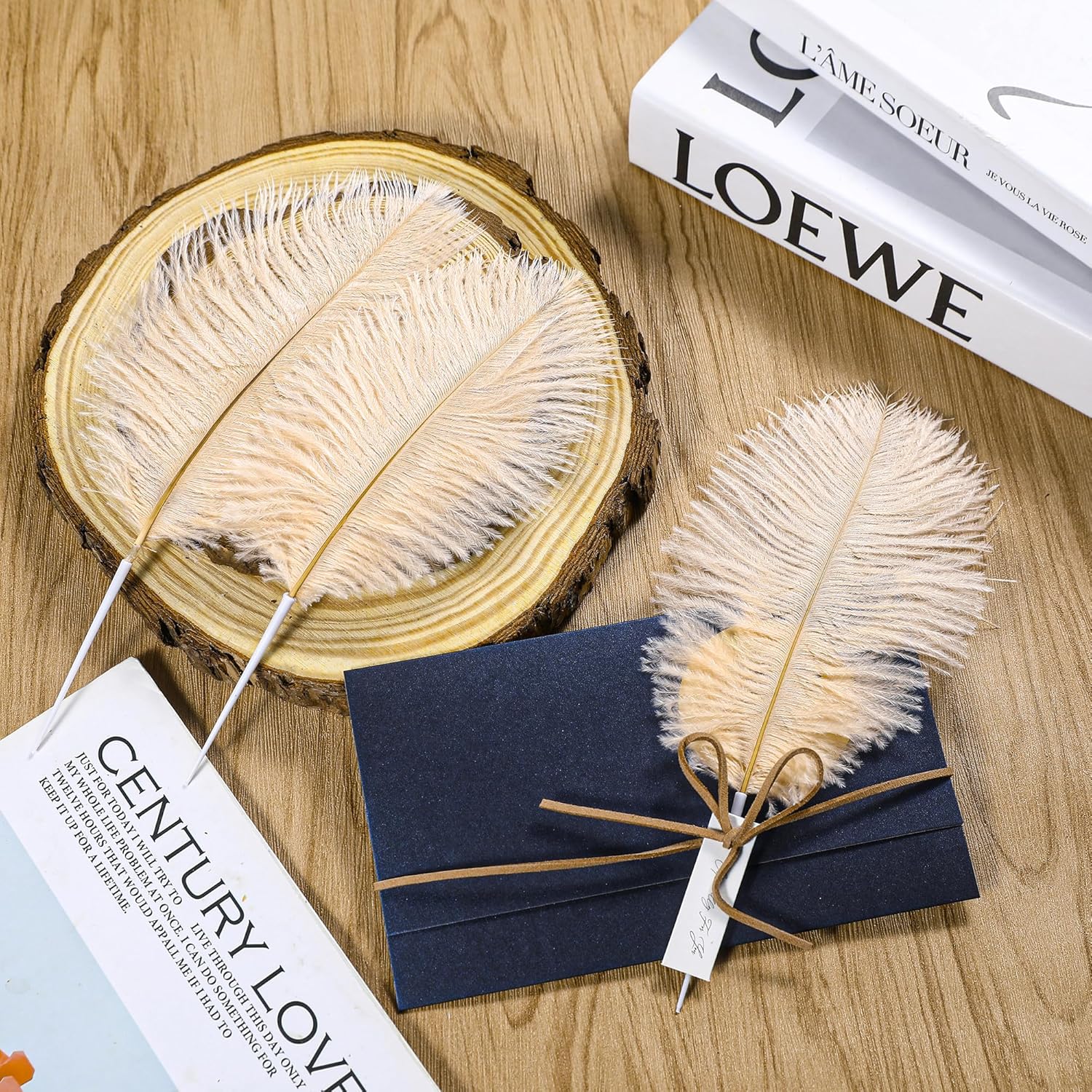 • Creative Ostrich Feathers Set: 30 pcs champagne ostrich feathers bulk 6-8 inches, 30 pcs small white sticks 3 inches long. Ostrich feathers kit total length can be up to 9-11 inches