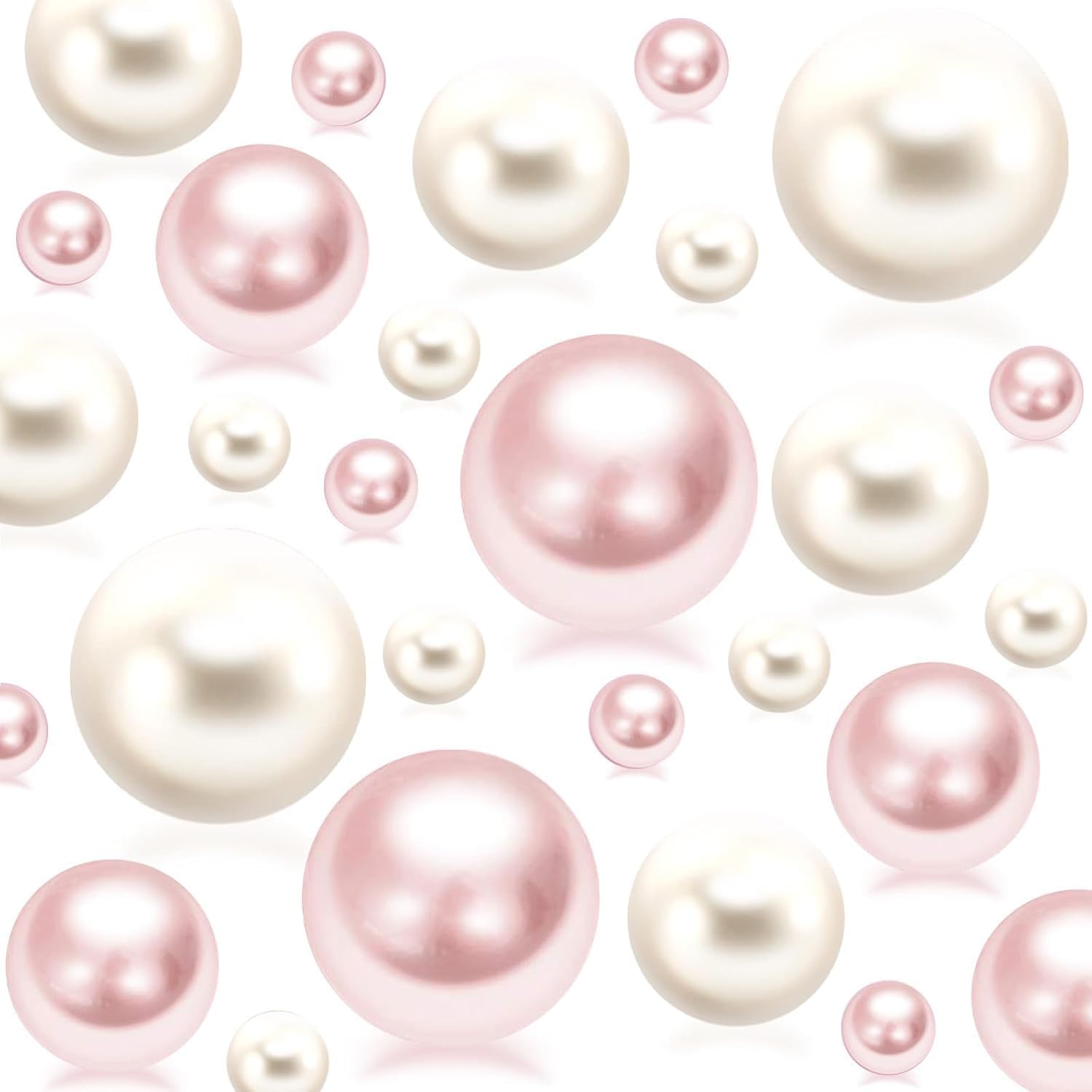 300Pcs Cream&Pink Polished No Hole Faux Pearl Beads for Vase Filling Decorations, Plastic Pearls Vase Fillers, Table Scatters, Wedding Centerpiece, Home Decor, 8/14/20 mm