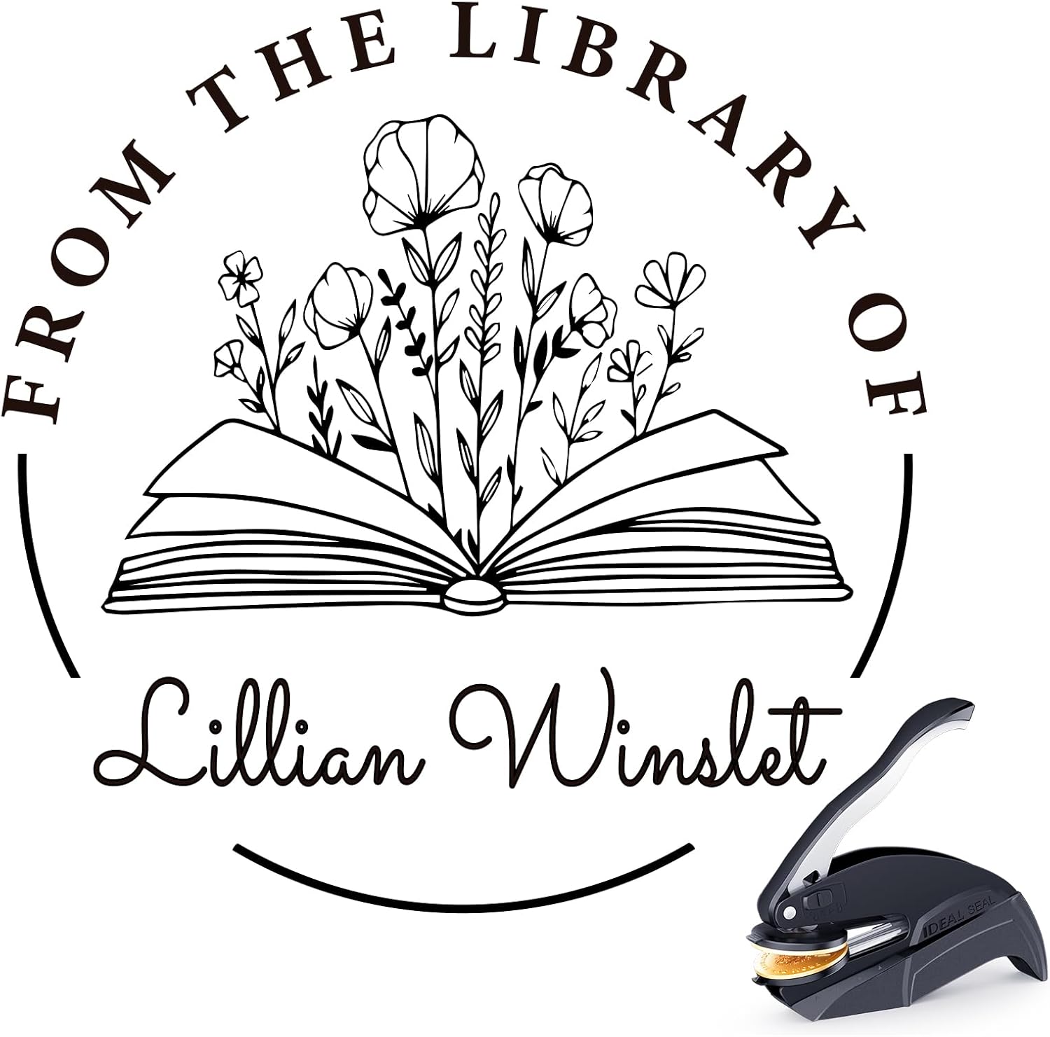 Embosser Stamp Custom - Book Stamp Personalized Gifts for Book Lovers, Readers, Home & Library Collections (Floral-05)