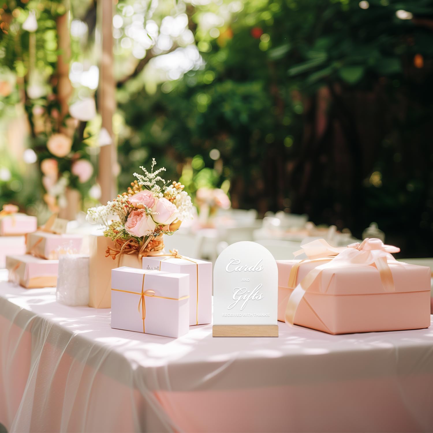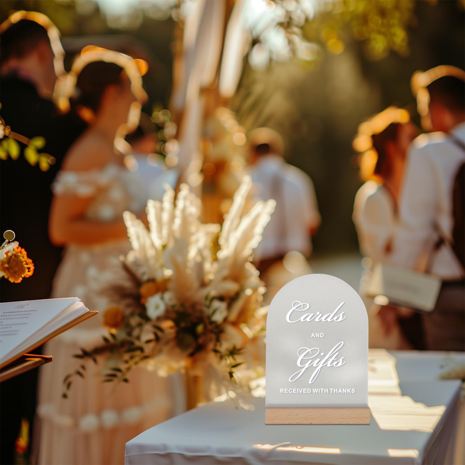 Cards and Gifts Sign for Ceremony and Reception, Acrylic Wedding Signs with Wood Stand, 5x7" Frosted Arch Cards Sign for Card Box, Perfect for Rustic Wedding Decoration, Party, Anniversary, Event