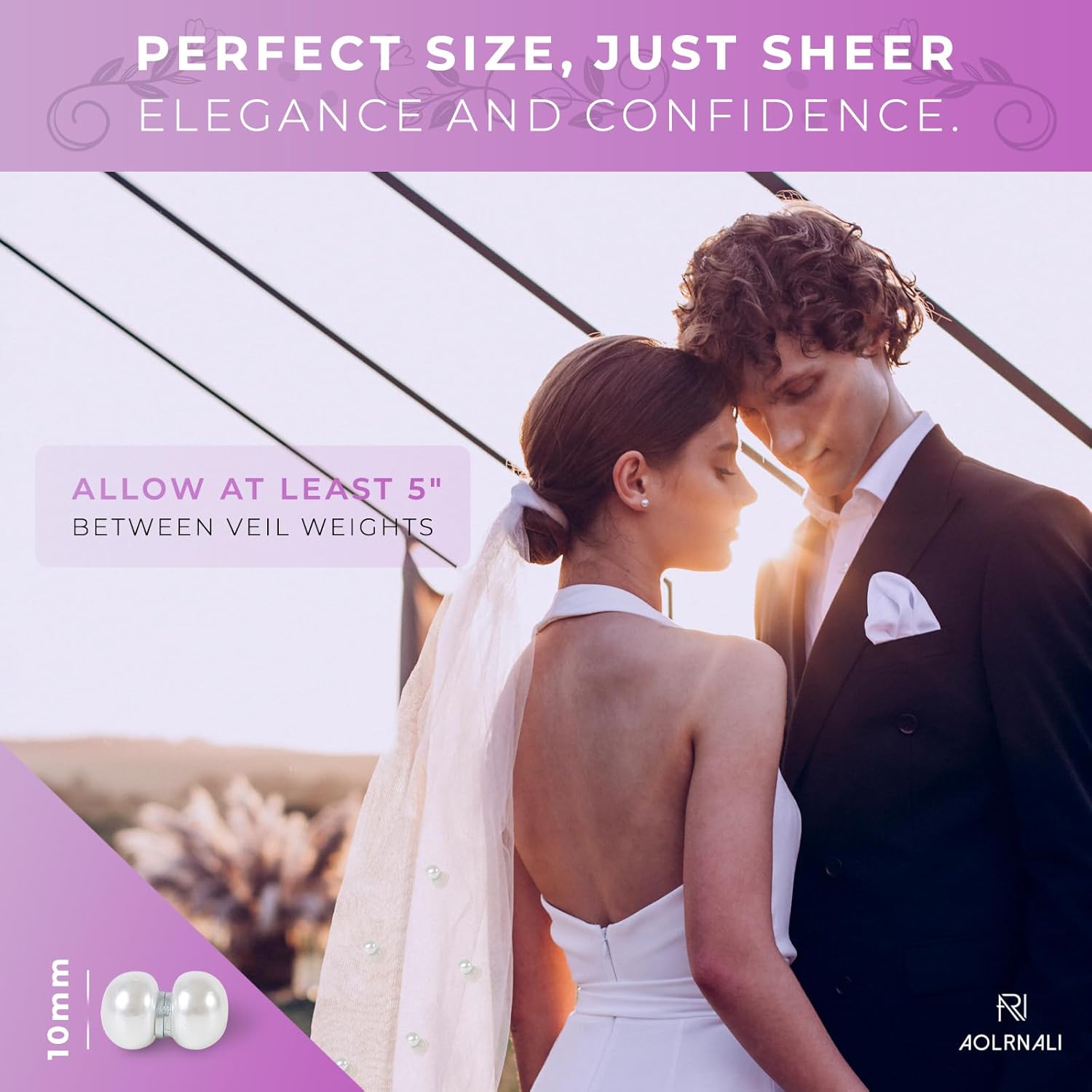 • EFFORTLESS APPLICATION: Simply attach double-sided pearl veil weights to the veil and let them work their magic. (at least 5 " apart) No more fussing with hairpins or readjustments - just sheer elegance and confidence.