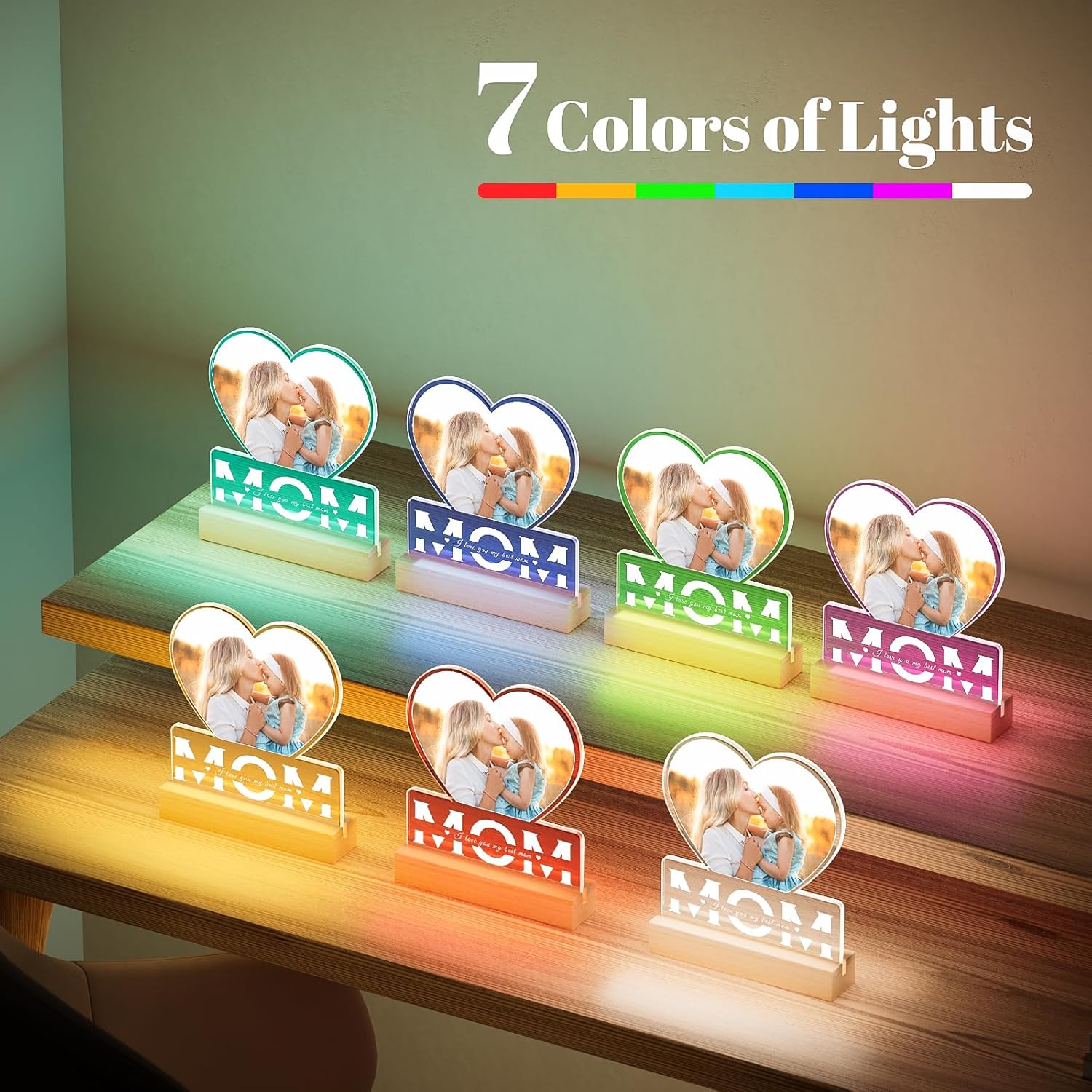 Personalized Gifts for Mom from Daughter and Son, Custom Picture Frames with Photo, Custom Photo Frame with Night Light, Customized Heart Picture Frame, Personalized Mom Birthday Gifts