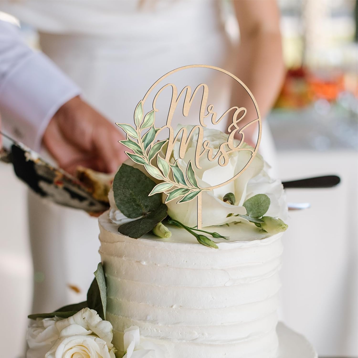 Mr & Mrs Cake Topper Greeny Wedding Cake Topper in Wood (Design 02)