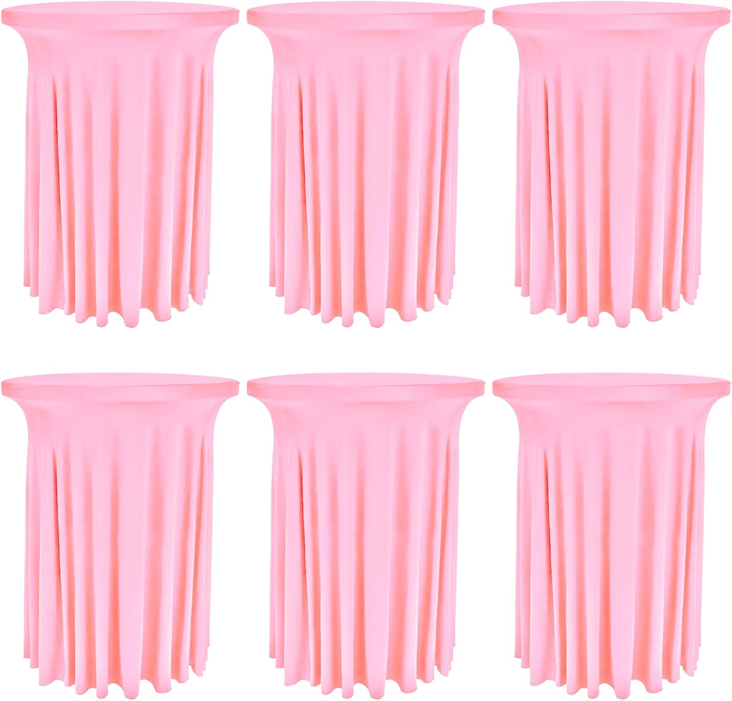 6 Pack Round Cocktail Tablecloth 32"x 43" Spandex Cocktail Table Skirt, Washable Stretch Fitted Table Covers for High Top Bar, Wedding, Party, Events (Pink)