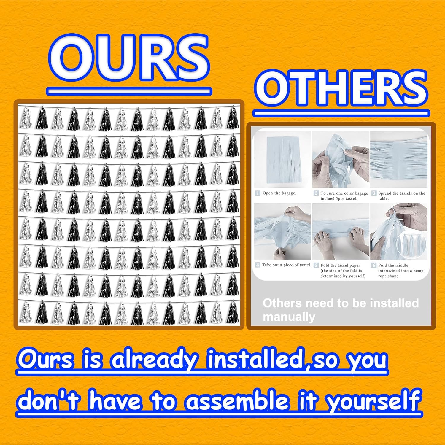 • 【Reusable Material】: high-quality metallic foil tassel garlands, with the virtue of nice craftsmanship and lightweight, they are reusable and safe, and not easy to fade; They come with white ribbon for hanging, and garland tassels hang perpendicular to the string, and are adjustable to provide you with the option of spreading the tassels out or piecing them closer together.