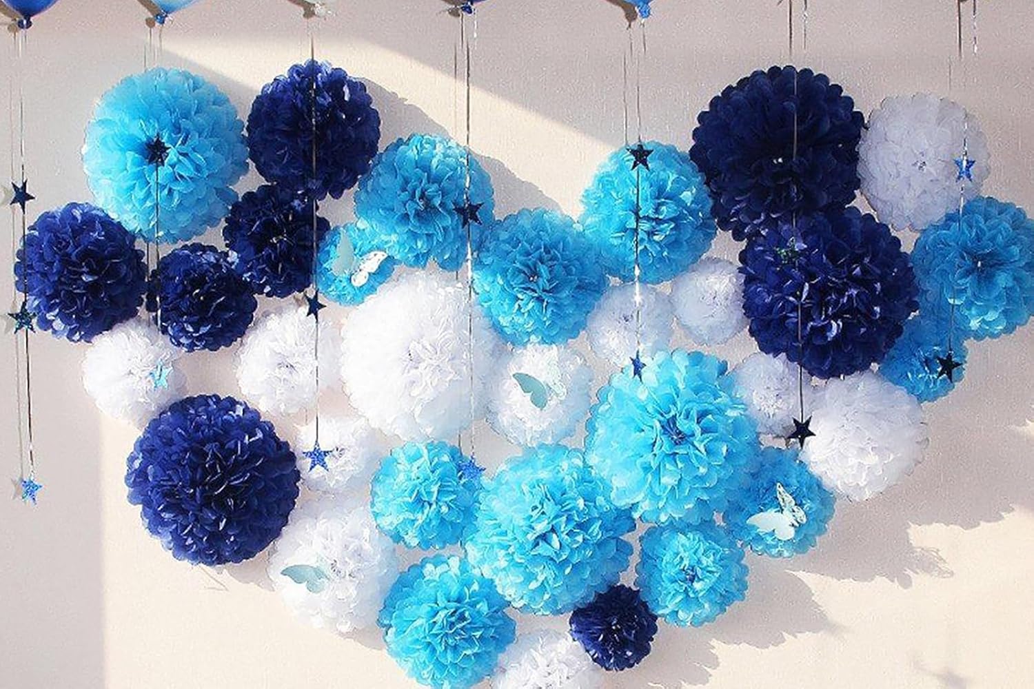 • HANGING the Paper Pom Poms from your ceiling, window, mantel, overhangs, archway, doorway, branches in trees, verandah, etc