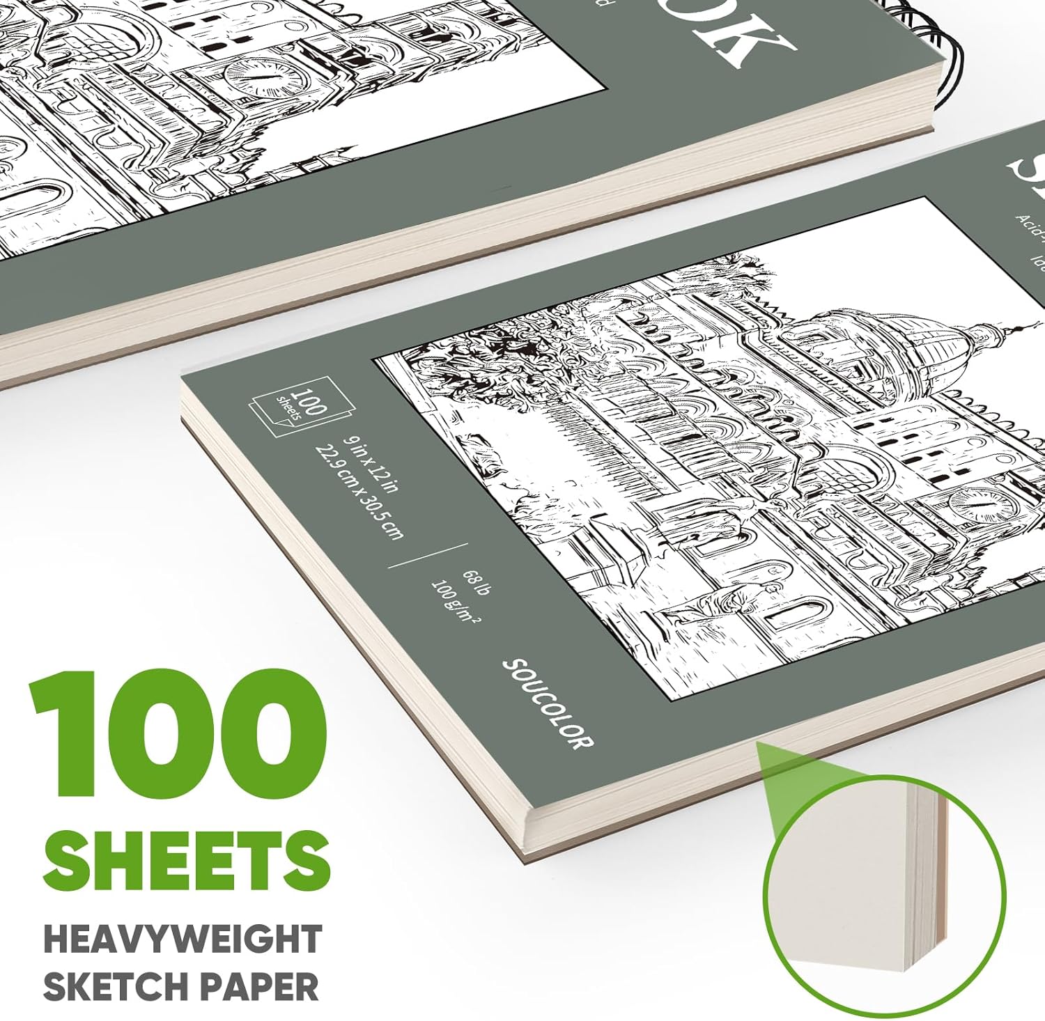 • 【Premium Paper Quality】Professional Sketch Book Drawing Pads. Great size 9 x 12 inches for all levels of artists. 100 sheets in each sketchpad, total of 100 premium sketch pad paper sheets at the affordable price. Nice texture for drawing, sketching. Excellent art paper book gift for who enjoys sketching, drawing, illustrating, painting, writing and creating art. Great sketchbook for using with graphite pencils, colored pencils, charcoal, pens, soft oil pastel, sketching sticks and more.