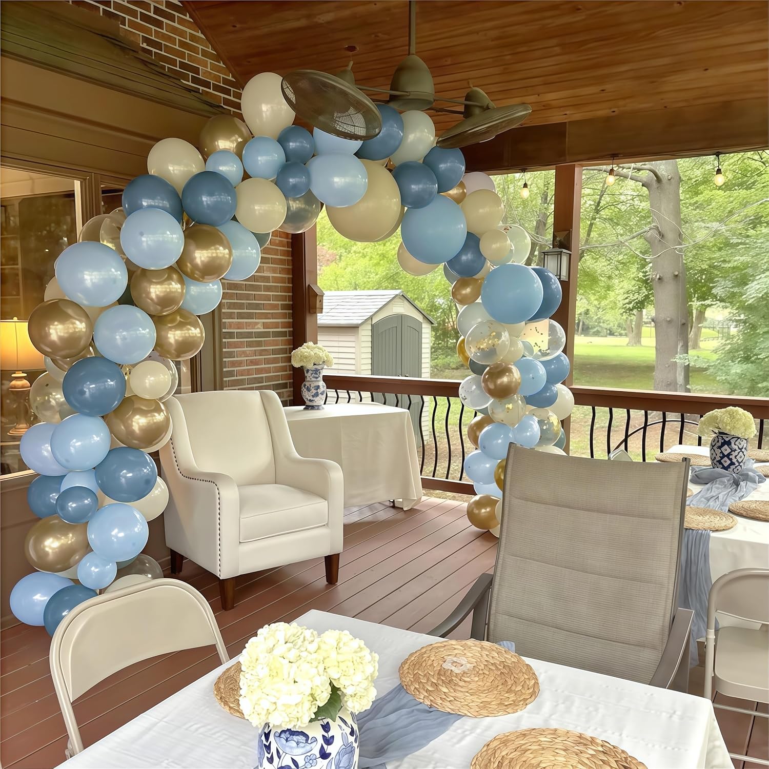 • ๐Ÿ’™ Dusty Blue Balloons Set: This is a beautiful bright balloon, which contains balloons of different colors. Include 12 inch white sand balloon(15pcs), dusty blue balloon(15pcs), Slate Baby Blue balloon(15pcs), metallic champagne gold balloon(10pcs), gold confetti balloon(5pcs), 2 rolls of ribbons. You can use these different shades of blue balloon kits, DIY balloon combinations to create your birthday party.