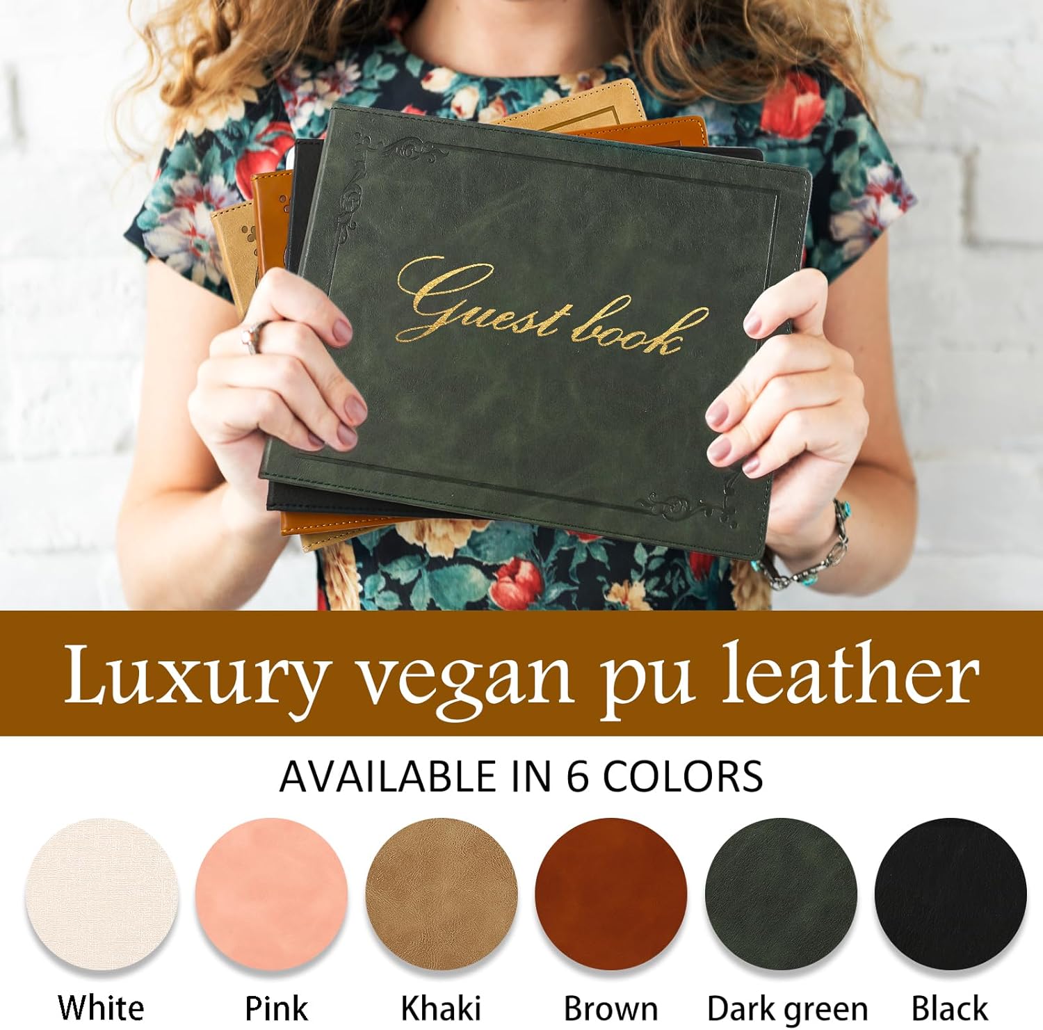• ELEGANT DESIGN: Treasure your special day in our beautiful guest book. Measuring 8 x 10 inches, it comes with an exquisite PU leather cover, decorated with beautiful gold foil letters and crafted using advanced technology. The shimmering gold accents not only enhance the beauty of the guest book wedding reception, but also its overall quality, making it treasured keepsake for years to come