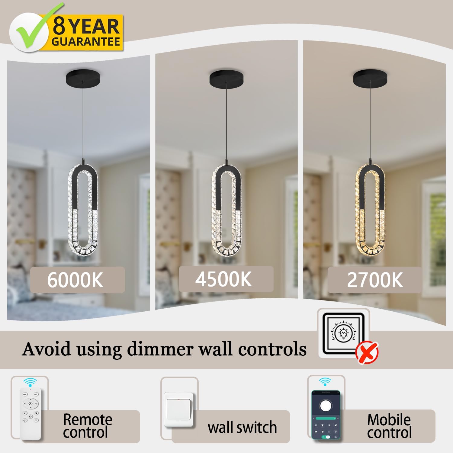 • 【Pendant Light Size】: Made of black metal and crystal, the pendant light features a black circular ceiling pan with a diameter of 5.9 inches. The crystal lamp shade has a diameter of 6.7 inches,H 21 inch. The pendant light has an adjustable cord and a total length of 59 inches, allowing you to choose the suitable height for your space.