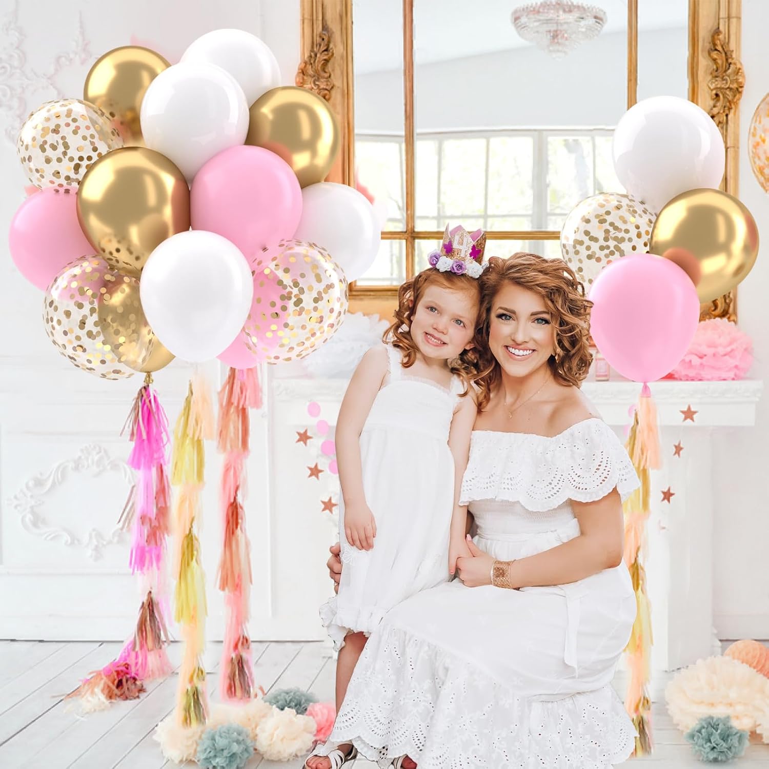 Patimate Pink Gold Confetti Balloons Set, 50 pcs 12 inch Metallic Gold Pastel Pink White Confetti Latex Balloons Kit for Birthday Baby Shower Girl Princess Party Decorations