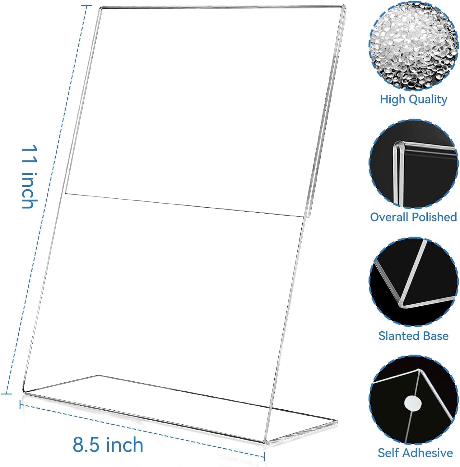EHWINE 6 Pack 8.5 x 11 Acrylic Sign Holder, Clear Plastic Signs Display Stand, Vertical Slanted Back Paper Holder Stand up Table Top Sign Holders Flyer Stand Frames Suitable for Office Business Store