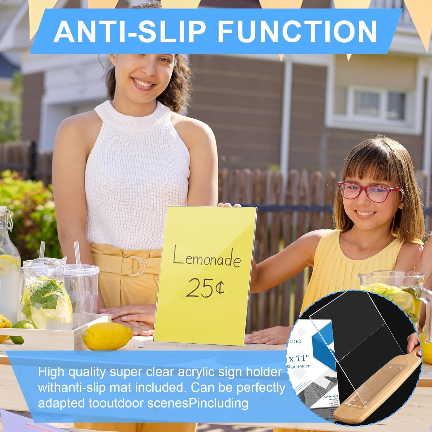 • Package Includes: 6 packs of 8.5 x 11 inch acrylic display holders, 24 pcs of self-adhesive stickers that the wind won't blow it over, even when used outdoors