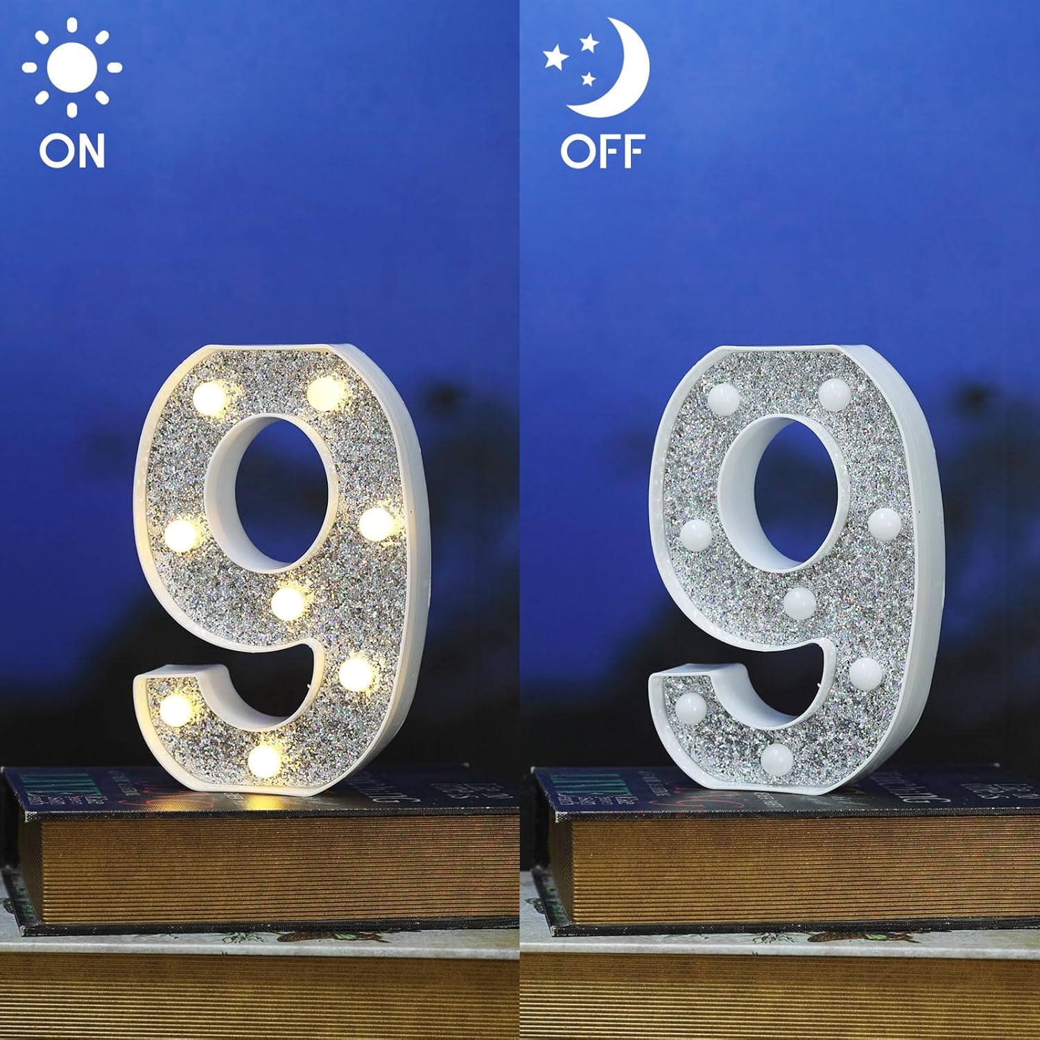 Marquee Light Letters for Table Decorations, Glitter Light Up Signs for Prom, Events, or Engagement Party Decor, Featuring Alphabet & Number Lighted Letters, Number 9