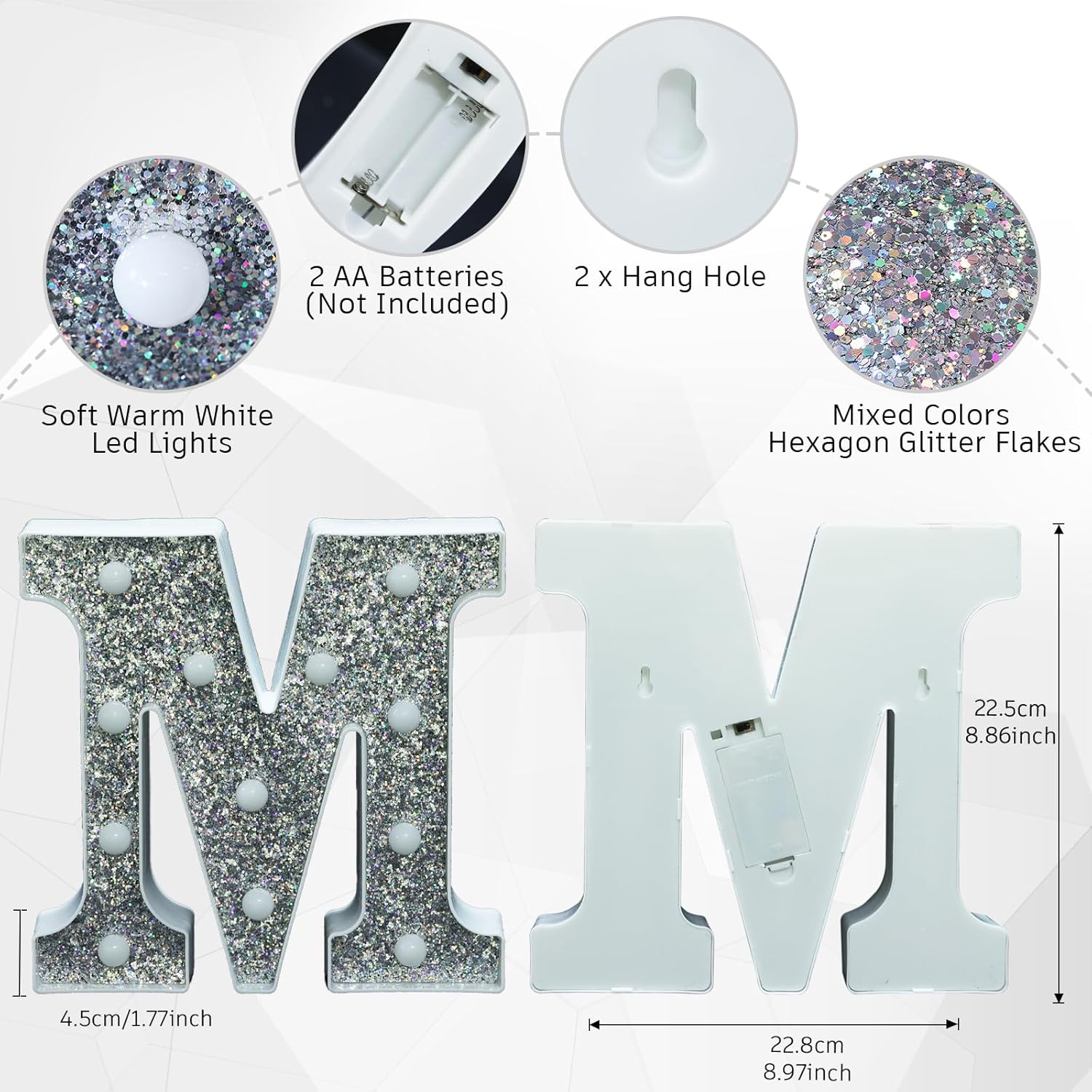 Light Up Marquee Letters for Table Decorations, Glitter Signs for Prom, Events, or Engagement Party Decor, Featuring Alphabet & Number Lighted Letters, Letter M