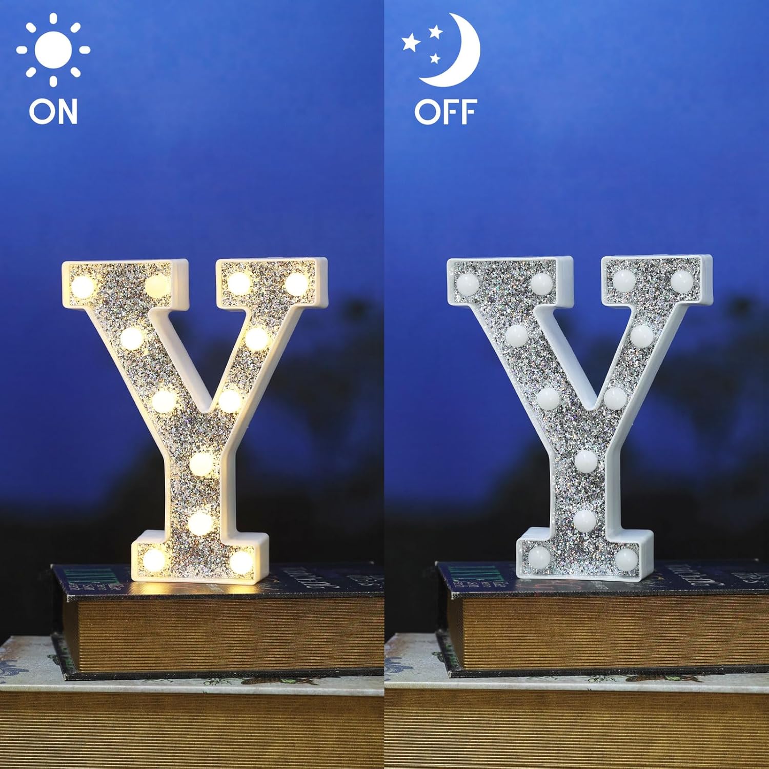 • 💡 Elegant Glitter Light-Up Letters with Silver Diamond Finish: These LED marquee light up letters feature a stunning glitter effect combined with a sophisticated silver diamond surface. Including all 26 alphabet letters and 10 numbers, these light up letters bring sparkle and elegance to any space, making them the perfect light letters for party decor, especially as light up letters for table settings or wall accents.
