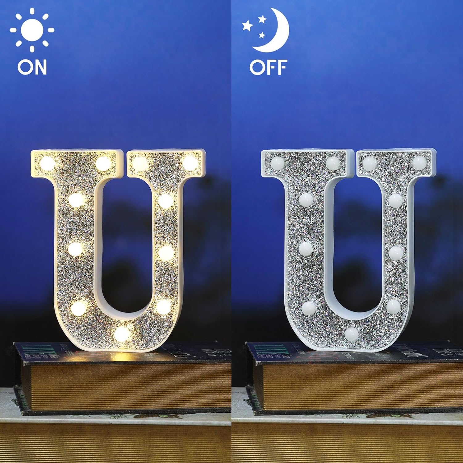Light Up Letters, Marquee Light Letters for Table Decorations, Glitter Light Up Signs for Prom, Events, or Engagement Party Decor, Featuring Alphabet & Number Lighted Letters, Letter U
