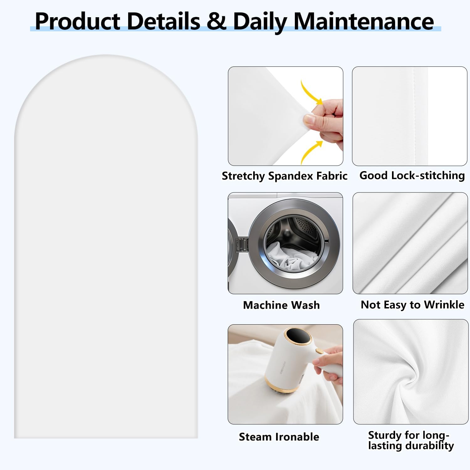 Hemmotop 7.2 ft White Arch Backdrop Cover (No Arch Stand) - Double-Sided Spandex Arch Covers Stretchy Backdrop for Party Wedding Birthday Baby Shower - Ideal for Balloon Arches