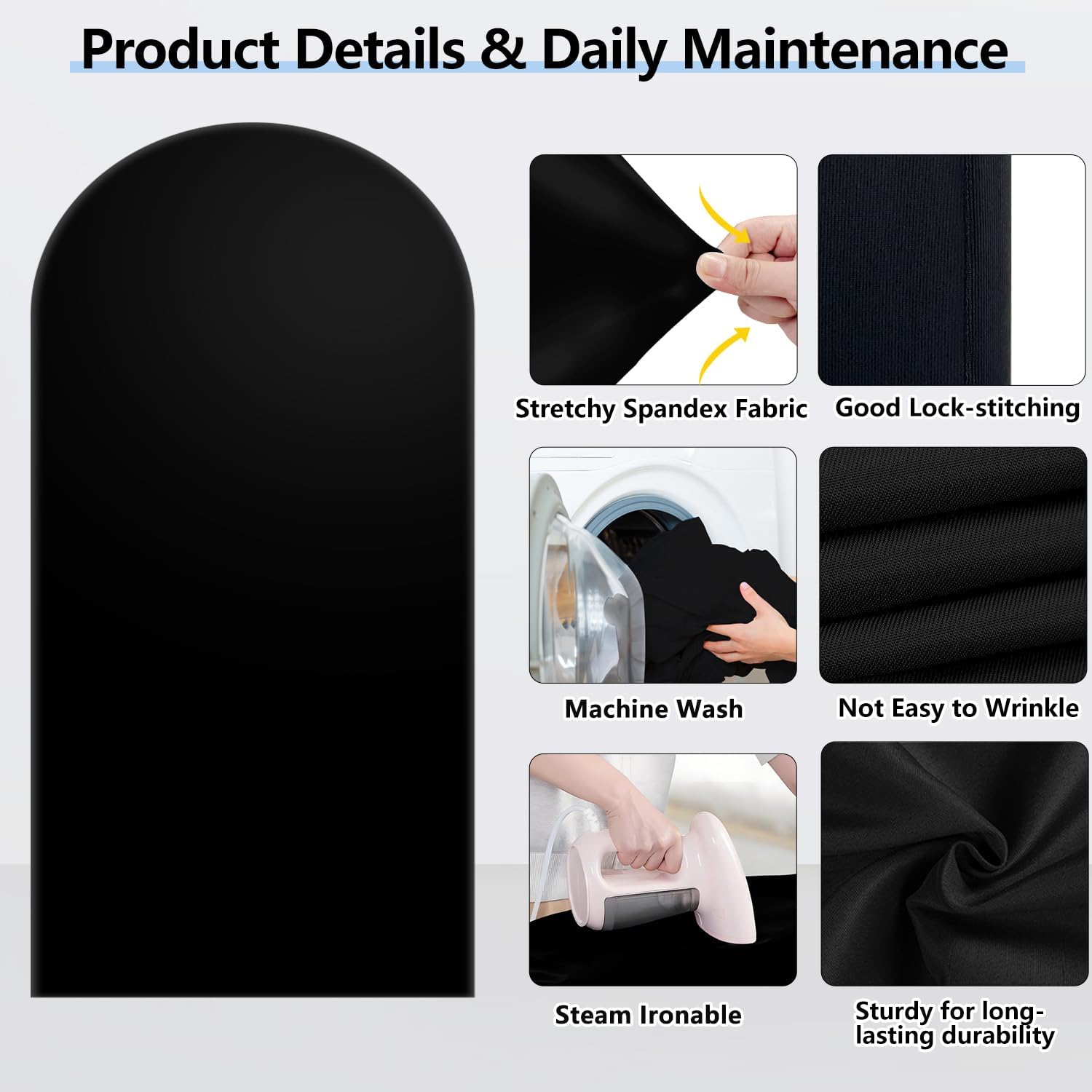 Hemmotop 7.2 ft Black Arch Backdrop Cover (No Arch Stand), Double-Sided Spandex Arch Covers Stretchy Backdrop for Party, Wedding, Birthday, Baby Shower, Reusable for Balloon Arches