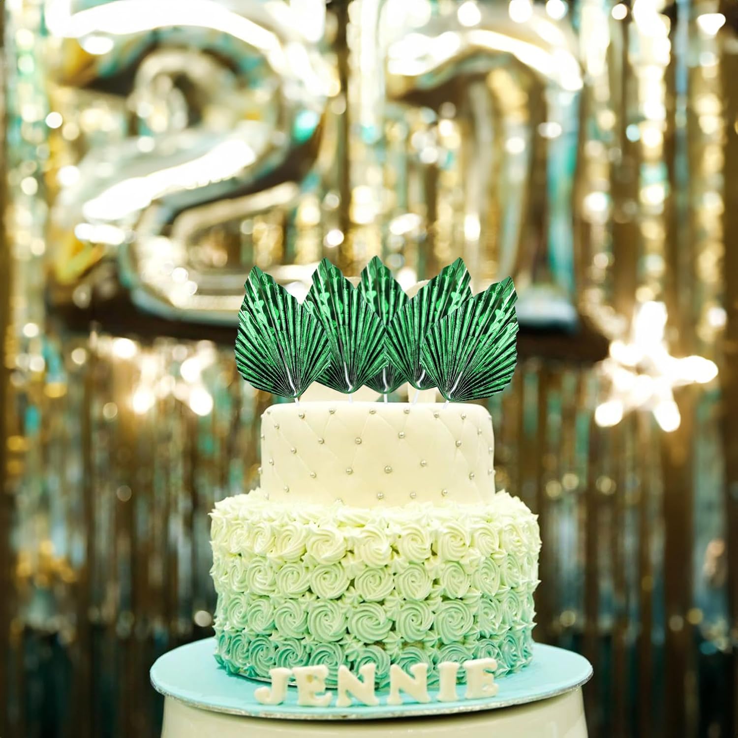 Gyufise 6Pcs Paper Palm Fan Cake Toppers Palm Spear Leaves Fan Cupcake Toppers Cake Insert Decorations Craft DIY Cake Bakeware Decoration for Birthday Party Wedding Party Decor Supplies Light Green