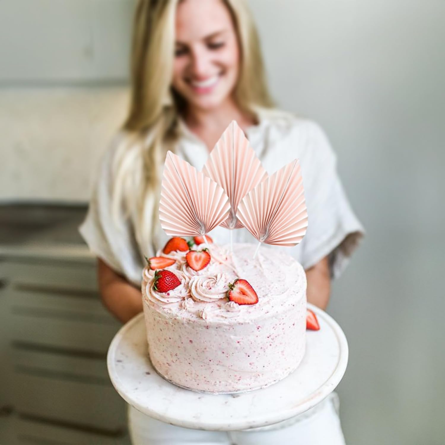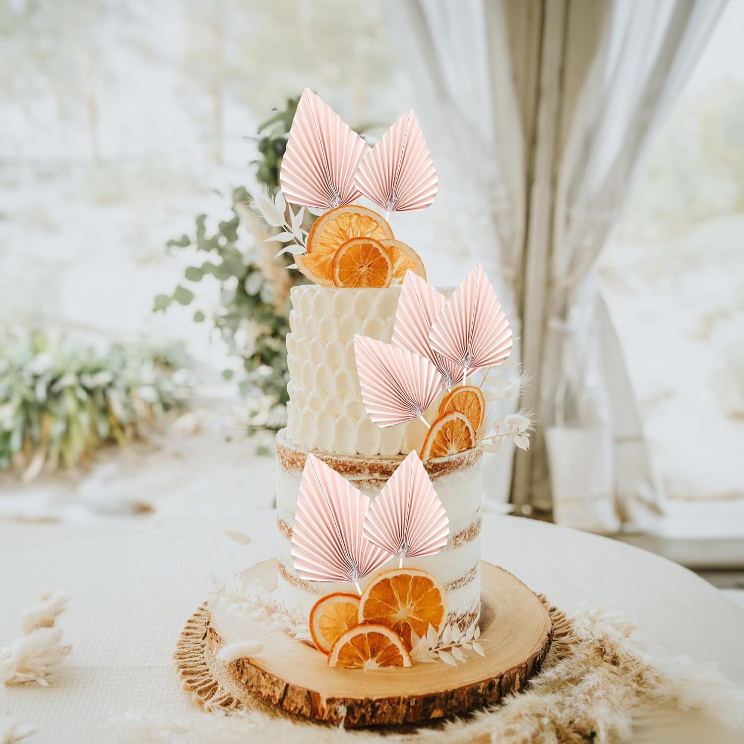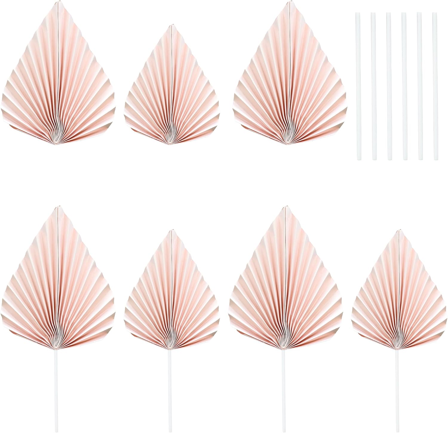Gyufise 6Pcs Paper Palm Fan Cake Toppers Palm Leaf Fan Cake Topper Palm Spear Leaf Cupcake Toppers Cake Insert Decoration For Cake Decorating Diy Craft Project Home Wedding Party Supplies Pink