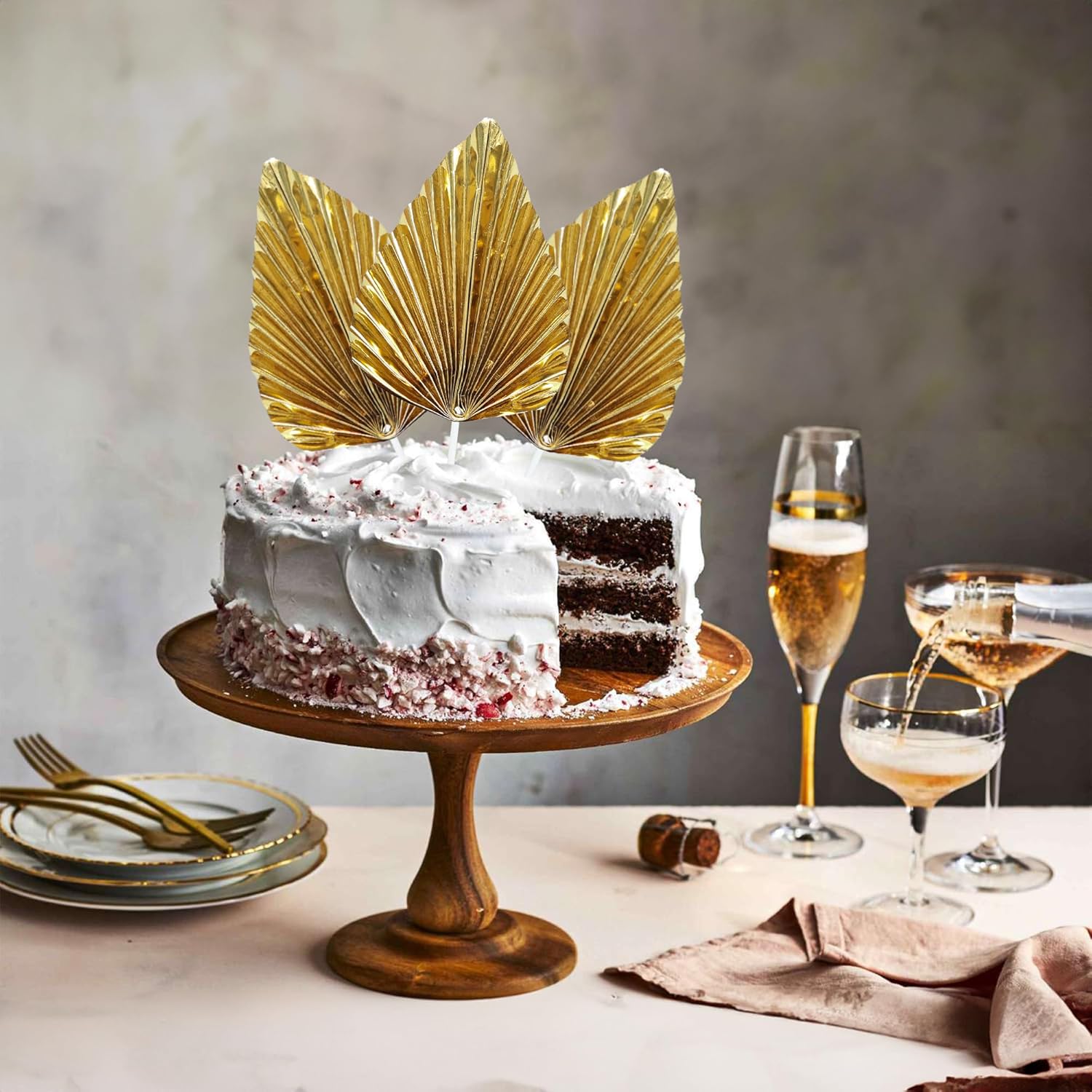 Gyufise 6Pcs Paper Palm Fan Cake Toppers Palm Spear Leaves Fan Cupcake Toppers Cake Insert Decorations Craft DIY Cake Bakeware Decoration for Birthday Party Wedding Party Decor Supplies Light Gold