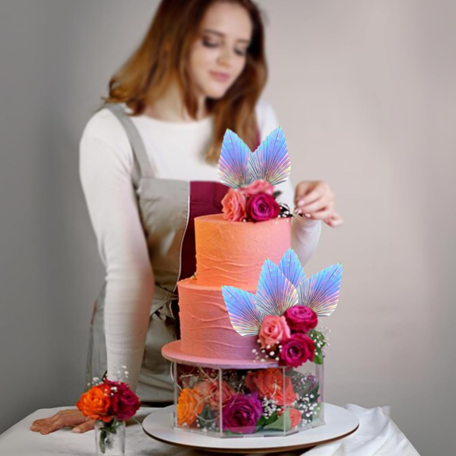 • -Package included: 6Pcs Paper Palm Fan Cake Toppers. Comes with unassembled, so you can insert into your cake with stick, which make your cake more interesting.