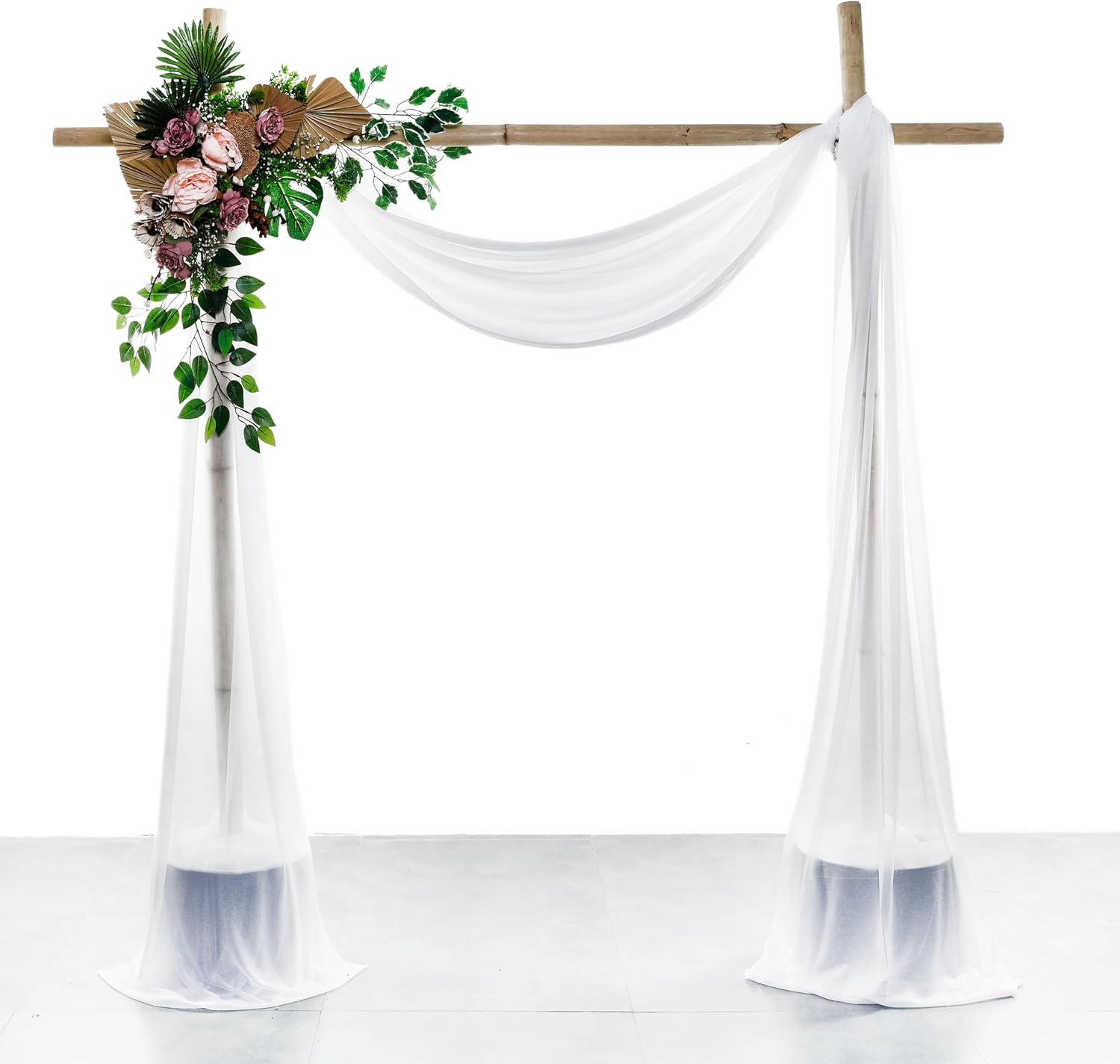 • ๐ŸŽ SIZE: 30 Inch Wide X 100 Feet Long - Perfect length for any size Arch (Round or Rectangle) for a elegant puddle drop. Long enough for any size of arch, canopy, chuppah, arbor or altars. Just wrap it anyway around the stands.